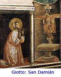 La Palabra de Dios Sabemos cuán atento permanecía Francisco a la escucha de la Palabra de Dios. La Palabra nutre toda su oración. Su oración no se inspira sólo en unos pocos textos evangélicos. En este hombre, que muere cantando un salmo, palpita de verdad la Biblia entera. Los salmos y cánticos bíblicos moldearon su oración. Francisco se sumergió de tal modo en la corriente de la oración bíblica, que reencontró y actualizó un tipo de hombre bíblico, el pobre de Yahvéh, en toda su dimensión de hombre que grita su desamparo y proclama su confianza en Dios, a la vez que adora y se sume en la alabanza. La Liturgia A la Palabra hay que añadir otra fuente de inspiración de la oración de Francisco, la Liturgia. En realidad, ambas fuentes se entremezclan. Pues es sobre todo a través de la Liturgia como le llega a Francisco la Palabra: una Palabra que ya no es un simple objeto de meditación, sino también, en cierto modo, una Palabra representada, celebrada. Una Palabra convertida en acción. Sabida es la importancia de la Eucaristía en la vida de oración de Francisco. Volveremos sobre ella más adelante. Las grandes fiestas del año litúrgico, que reproducen el misterio de Cristo de un modo sacramental, Francisco las vive con intensidad. Baste con evocar su manera de celebrar la Navidad o la Pascua. Su oración llega incluso a adaptarse a la forma de las oraciones litúrgicas o de los grandes prefacios. Orientación teocéntrica Esta frecuentación de la Palabra, a través de la Liturgia, da a la oración de Francisco una orientación netamente teocéntrica. Su oración está centrada en Dios. Es, ante todo, la expresión de un hombre que se ha dejado fascinar por la realidad de Dios y por su grandeza infinita. Es todo lo contrario de una subjetividad replegada sobre sí misma. III. EL ENCUENTRO CON DIOS ![]()