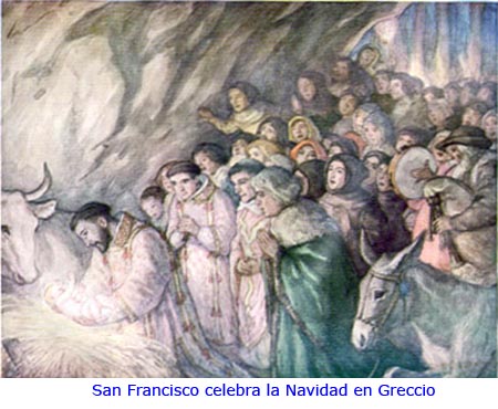 Francisco frecuenta, pues, el trato de los leprosos, cuida sus llagas. La vista diaria de su rostro desfigurado le prepara al descubrimiento de otro Rostro. En esta época, a Francisco le gusta sumergirse en la contemplación de un icono del Crucificado, en la capilla ruinosa de San Damián, situada algo a las afueras de Asís. Un día, este icono recobra vida para él y lo interpela: «Francisco, ve y repara mi iglesia que, como ves, se derrumba en ruinas». Francisco queda conmovido por esta voz. Se consagrará con todas sus fuerzas a la ejecución de la orden recibida. Pero Francisco ha quedado fascinado, tanto o aún más, por el rostro del Señor. De estilo bizantino, el icono que contempla representa ciertamente a un Crucificado. Pero sus rasgos no evocan al hombre de dolores en cuanto tal. Lo que Francisco descubre en el rostro vuelto hacia él, es la humanidad de Dios. Ya no es el Dios de majestad, el todopoderoso, cuyos señoríos, los tenga el Imperio o la Iglesia, son, y muy a gusto, los garantes seguros de su poder. Tampoco el Dios que debía salir fiador del nuevo orden de cosas instaurado por el «común». Del Crucificado irradia una nueva gloria, la de la humildad de Dios. Dios hecho tan humilde que, en adelante, será el hermano de todos, pero principalmente del más pequeño, del más pobre. Se desposa con el destino humano hasta compartir la suerte del más miserable. ¡Humanización de Dios que es revelación suprema de su gloria! Sólo en Dios el amor es suficientemente poderoso para hacer suya la experiencia total del ser amado, incluida hasta la muerte. Tal es el Rostro cuyos rasgos se imprimen de forma indeleble en el corazón de Francisco. En adelante, su vida entera puede ser considerada como una búsqueda de la luz de ese Rostro, hasta la experiencia transformante de La Verna, hasta el encuentro final cuando, «cumplidos, por fin, en Francisco todos los misterios, liberada su alma santísima de las ataduras de la carne y sumergida en el abismo de la divina claridad, se durmió en el Señor este varón bienaventurado» (LM 14,6; cf. 1 Cel 110). Por el momento, Francisco no aparta la vista de la mirada de bondad infinita del Crucificado que reposa sobre él. En esta luz divina, evalúa mejor aún las tinieblas en que está sumergido: búsqueda angustiosa de su camino, que el mandato del Crucificado comienza a esclarecer; recuerdos de su pasado, perdido para Dios, del que sólo la misericordia del Señor podría preservarlo en el futuro; a ello se añade, sin embargo, la convicción de que Aquel que le ha dado la orden de reparar la iglesia -¡y solo Él!- puede concederle el llevar a buen término una tarea para la que se siente tan poco preparado. Pide entonces incesantemente ser iluminado por ese Rostro para tomar de su luz la fe, la esperanza y el amor necesarios y para discernir cada vez mejor el alcance de la orden recibida de lo alto de la cruz: Sumo, glorioso Dios, ¡La faz del Señor toda radiante de humanidad de Dios! ¡Claridad que ilumina progresivamente un mundo inhumano, esclavizado por la sed de dominio y de placer! ¡Experiencia que marca definitivamente el caminar de Francisco! Señalamos aquí solamente algunas de las consecuencias en que se prolonga esa experiencia. 3. Francisco, pues, al igual que todos los grandes creyentes, conoció las noches oscuras o del espíritu. Pero su mística es radicalmente una mística de luz. Para Francisco, el símbolo del Altísimo es «el señor hermano Sol, el cual es día, y por el cual nos alumbras. Y él es bello y radiante con gran esplendor» (Cánt 3-4). Dios, por tanto, es luz. Para Francisco, acercarse a Él, no es sumergirse en las tinieblas, como para algunos Padres griegos. Según Gregorio de Nisa, por ejemplo, la luz divina es tan deslumbradora que, para nosotros, resulta tiniebla; progresar en el conocimiento de Dios es reconocer con evidencia creciente cuán incognoscible es Dios. También para Francisco Dios es «invisible, inenarrable, inefable, incomprensible, inescrutable» (1 R 23,11), porque «habita en una luz inaccesible» (Adm 1,5). Sin embargo, Francisco cree que ya desde ahora, en este bajo mundo, Dios quiere iluminarlo progresivamente. Y así ora: «Clarificada sea en nosotros tu noticia...» (ParPN 3). ¿Por qué? Precisamente porque en la raíz de su vida nueva está la experiencia de Cristo que le ha arrancado de sus tinieblas, de Cristo por quien ha hecho irrupción, en su vida, la revelación de la humanidad de Dios, esa nueva luz. De esta manera, Francisco fue llevado de golpe al corazón mismo de la fe cristiana, a Aquel que dijo: «Yo soy el camino, la verdad y la vida. Nadie va al Padre sino por mí. Si me conocéis a mí, conoceréis también a mi Padre; desde ahora lo conocéis y lo habéis visto... Felipe, el que me ve a mí, ve al Padre» (Jn 14,6-9; cf. Adm 1,1-4). En resumen, Francisco, en su búsqueda de Dios, permanece centrado en el misterio de la Encarnación. Esta humanización de Dios es la que, para él, hace brillar la única luz decisiva sobre Dios: Cristo, luz verdadera, le conduce al Padre. ¡Ver a Cristo es ver al Padre! Meditar larga y profundamente los comportamientos, actos y gestos de Cristo, es penetrar en un conocimiento profundo de Dios; escrutar el rostro humano de Jesús, es introducirse a ver resplandecer en él todo el movimiento de amor de Dios al hombre, movimiento que coincide con el ser divino mismo. Estas certezas no pudieron menos que agudizar, en un hombre visual como Francisco, el deseo de ver a su Señor. Tal es, por ejemplo, el sentido del «belén» de Greccio. Francisco se explaya con un buen hombre llamado Juan y le expone sus proyectos: «Deseo celebrar la memoria del niño que nació en Belén y quiero contemplar de alguna manera con mis ojos (cf. Adm 1, 21) lo que sufrió en su invalidez de niño, cómo fue reclinado en el pesebre y cómo fue colocado sobre heno entre el buey y el asno» (1 Cel 84). Tomás de Celano, a quien debemo