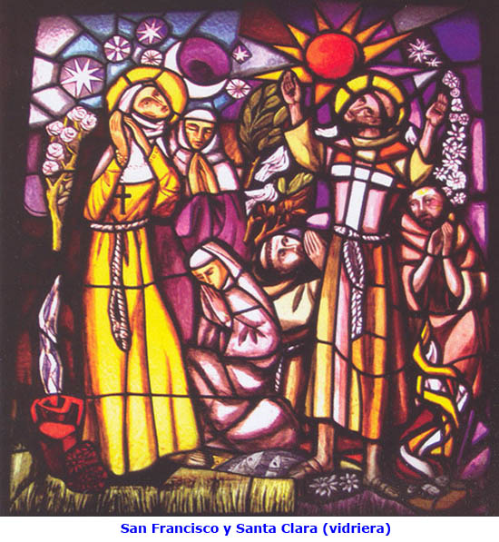 CONVERSIÓN-VOCACIÓN DE SANTA CLARA En un contexto familiar y social diferente del de Francisco, también Clara de Favarone conoció su itinerario penitencial que la llevó al descubrimiento del designio de Dios sobre ella. Lo mismo que Francisco, lo recordará al final de su vida en su Testamento. La mediación humana de que Dios se sirvió, que para Francisco habían sido los leprosos, fue para ella el mismo Francisco. También ella habla reiteradamente de conversión: «El altísimo Padre celestial se dignó, por su misericordia y gracia, iluminar mi corazón para que, con el ejemplo y las enseñanzas de nuestro beatísimo Padre Francisco, hiciese yo penitencia, poco después de su conversión» (TestCl 24). Clara no habla, como Francisco, de «los pecados» de su vida anterior; hubiera sido afectación, dada la limpidez de su infancia y de su adolescencia; pero reconoce que Dios la liberó de las «vanidades del mundo», es decir, de aquel cerco de convencionalismos sociales y de culto a la prosapia que condicionaba su vida, no obstante su dedicación a la piedad y al socorro de los pobres. Hay una coincidencia entre la experiencia inicial de su conversión como una «iluminación del corazón» y la oración de Francisco ante el Crucifijo: «Ilumina, Señor, las tinieblas de mi corazón». Es un concepto genuinamente bíblico. La sola iluminación de la mente serviría de poco; Dios ilumina ese centro de los sentimientos y de las opciones de la persona humana que es el corazón; toca el corazón, lo purifica, lo cambia, lo crea de nuevo (Salmo 50,12.19). Bajo el ardor de las exhortaciones de Francisco en aquellas citas secretas de ambos, Clara se abrió sin reservas al amor y al seguimiento de Cristo pobre y crucificado. Este ideal, en que la «plantita» irá más lejos que su guía y maestro, con un radicalismo mayor, se le ofreció como una aventura fascinante, para la cual no vaciló en arrastrar la pérdida de la reputación propia y la de los suyos con la fuga de la casa paterna. Años después, al tener noticia de la decisión de la princesa Inés de Bohemia de seguir a Cristo pobre, renunciando a la mano del emperador y al fausto de la corte, le escribirá para congratularse con ella: «¡Magnífico y estupendo negocio: abandonar lo temporal por lo eterno, granjearse lo celestial por lo terreno, recibir el ciento por uno y asegurar para toda la eternidad la vida bienaventurada!» (1CtaCl 30). Como Francisco, también Clara habla de iniciativa de Dios, más aún, de «inspiración» divina en la vocación propia y en la de cada una de las hermanas que ella recibe como un don del Señor (TestCl 26; RCl 2,1; 6,3). Tiene conciencia de sentirse alcanzada amorosamente por un designio eterno, que ella, con precisión teológica, llama elección-vocación: «Entre tantos beneficios como hemos recibido y estamos recibiendo cada día de la liberalidad de nuestro Padre de las misericordias, por los cuales debemos mayormente rendirle acciones de gracias, uno de los mayores es el de nuestra vocación y, cuanto ésta es más grande y más perfecta, tanto más deudoras le somos. El Hijo de Dios se ha hecho camino para nosotros, y ese camino nos lo ha mostrado y enseñado, con la palabra y el ejemplo, nuestro padre san Francisco, verdadero amante e imitador suyo... Hemos de admirar, por lo tanto, la copiosa benignidad de Dios, ya que, por su abundante misericordia y caridad, se dignó manifestarnos, por medio de su santo, este designio sobre nuestra vocación y elección» (TestCl 2-5, 15s). Después de una breve experiencia, primero en la hospedería de las benedictinas de Bastia y luego con una comunidad de vida más sencilla en Sant'Angelo in Panzo -donde fue a juntársele su hermana Inés, fugada asimismo de casa, y alguna otra amiga de juventud-, el grupo de «hermanas pobres» se lanzó, en San Damián, al seguimiento heroico de Cristo en total inseguridad, sostenidas por la certeza del amor providente del Padre del cielo. Fueron comienzos duros, como lo recuerda ella misma: hubo «penuria, fatiga, tribulación, ignominia y desprecio del mundo». Pero todo lo tenían «por suma delicia». Francisco, visto el resultado, «se alegró mucho en el Señor» y trazó para ellas una forma de vida muy elemental. «Aquí, en poco tiempo, nos multiplicó grandemente el Señor por su misericordia y gracia», concluye Clara. [L. Iriarte, Ejercicios espirituales, Valencia 1998, pp. 36-38]