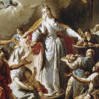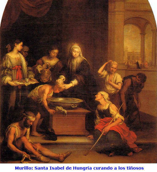 HUNGRÍA Isabel practicaba asiduamente las obras de misericordia: daba de beber y de comer a quien llamaba a su puerta, proporcionaba vestidos, pagaba las deudas, se hacía cargo de los enfermos y enterraba a los muertos. Bajando de su castillo, a menudo iba con sus doncellas a las casas de los pobres, les llevaba pan, carne, harina y otros alimentos. Entregaba los alimentos personalmente y controlaba con atención los vestidos y las camas de los pobres. Cuando refirieron este comportamiento a su marido, este no sólo no se disgustó, sino que respondió a los acusadores: «Mientras no me venda el castillo, me alegro». En este contexto se sitúa el milagro del pan transformado en rosas: mientras Isabel iba por la calle con su delantal lleno de pan para los pobres, se encontró con su marido que le preguntó qué llevaba. Ella abrió el delantal y, en lugar de pan, aparecieron magníficas rosas. Este símbolo de caridad está presente muchas veces en las representaciones de santa Isabel. Su matrimonio fue profundamente feliz: Isabel ayudaba a su esposo a elevar sus cualidades humanas a nivel sobrenatural, y él, en cambio, protegía a su mujer en su generosidad hacia los pobres y en sus prácticas religiosas. Cada vez más admirado de la gran fe de su esposa, Luis, refiriéndose a su atención por los pobres, le dijo: «Querida Isabel, es a Cristo a quien has lavado, alimentado y cuidado». Un testimonio claro de cómo la fe y el amor a Dios y al prójimo refuerzan la vida familiar y hacen todavía más profunda la unión matrimonial. La joven pareja encontró apoyo espiritual en los Frailes Menores, [los franciscanos], que, desde 1222, se difundieron en Turingia. Entre ellos Isabel eligió a fray Rogelio (Rüdiger) como director espiritual. Cuando éste le contó la historia de la conversión del joven y rico comerciante Francisco de Asís, Isabel se entusiasmó todavía más en su camino de vida cristiana. Desde aquel momento, siguió con más decisión aún a Cristo pobre y crucificado, presente en los pobres. Incluso cuando nació su primer hijo, al que siguieron después otros dos, nuestra santa no abandonó nunca sus obras de caridad. Además ayudó a los Frailes Menores a construir un convento en Halberstadt, del cual fray Rogelio se convirtió en superior. La dirección espiritual de Isabel pasó, así, a Conrado de Marburgo. Una dura prueba fue el adiós a su marido, a finales de junio de 1227 cuando Luis IV se unió a la cruzada del emperador Federico II, recordando a su esposa que se trataba de una tradición para los soberanos de Turingia. Isabel respondió: «No te retendré. He entregado toda mi persona a Dios y ahora también tengo que darte a ti». Sin embargo, la fiebre diezmó las tropas y Luis cayó enfermo y murió en Otranto, antes de embarcarse, en septiembre de 1227, a la edad de veintisiete años. Isabel, al conocer la noticia, se afligió tanto que se retiró a la soledad, pero después, fortalecida por la oración y consolada por la esperanza de volver a verlo en el cielo, comenzó a interesarse de nuevo por los asuntos del reino. Pero la esperaba otra prueba: su cuñado usurpó el gobierno de Turingia, declarándose auténtico heredero de Luis y acusando a Isabel de ser una mujer devota incompetente para gobernar. La joven viuda, junto con sus tres hijos, fue expulsada del castillo de Wartburg y buscó un lugar donde refugiarse. Sólo dos de sus doncellas permanecieron a su lado, la acompañaron y confiaron a los tres hijos a los cuidados de los amigos de Luis. Peregrinando por las aldeas, Isabel trabajaba donde recibía acogida, asistía a los enfermos, hilaba y cosía. Durante este calvario, soportado con gran fe, con paciencia y entrega a Dios, algunos parientes, que le seguían siendo fieles y consideraban ilegítimo el gobierno de su cuñado, rehabilitaron su nombre. Así Isabel, a principios de 1228, pudo recibir una renta apropiada para retirarse en el castillo de la familia en Marburgo, donde vivía también su director espiritual Conrado. Fue él quien refirió al Papa Gregorio IX el siguiente hecho: «El viernes santo de 1228, poniendo las manos sobre el altar de la capilla de su ciudad, Eisenach, donde había acogido a los Frailes Menores, en presencia de algunos frailes y familiares, Isabel renunció a su propia voluntad y a todas las vanidades del mundo. Quería renunciar también a todas las posesiones, pero yo la disuadí por amor de los pobres. Poco después construyó un hospital, recogió a enfermos e inválidos y sirvió en su propia mesa a los más miserables y desamparados. Al reprenderla yo por estas cosas, Isabel respondió que de los pobres recibía una gracia especial y humildad». Podemos descubrir en esta afirmación una cierta experiencia mística parecida a la que vivió san Francisco: en efecto, el Poverello de Asís declaró en su Testamento que, sirviendo a los leprosos, lo que antes le resultaba amargo se transformó en dulzura del alma y del cuerpo (Test 1-3). Isabel pasó los últimos tres años de su vida en el hospital que ella misma había fundado, sirviendo a los enfermos, velando por los moribundos. Siempre trataba de realizar los servicios más humildes y los trabajos repugnantes. Se convirtió en lo que podríamos llamar una mujer consagrada en medio del mundo, y formó, con algunas de sus amigas, vestidas con hábitos grises, una comunidad religiosa. No es casualidad que sea patrona de la Tercera Orden Regular de San Francisco y de la Orden Franciscana Secular. * * * ISABEL RECONOCIÓ Y
