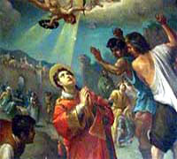 * * * San Dionisio, papa del año 259 al año 268. Pertenecía al clero romano y pronto se hizo notar por su cultura y grandes cualidades. Sucedió en la cátedra de Pedro a Sixto II, y le sucedió Félix I. Después de la persecución del emperador Valeriano, muerto el año 260, alivió y consoló al pueblo cristiano afligido, rescató a cautivos, enseñó los fundamentos de la fe a quienes los ignoraban, organizó la iglesia constituyendo diócesis y parroquias, prodigó su caridad con los pobres y necesitados. Fue sepultado en el cementerio de Calixto, en la Vía Apia de Roma. San Eutimio de Sardes. Nació en Ouzara (Licaonia, Turquía) hacia el año 750. Estudió en Alejandría y cuando regresó a su patria ingresó en un monasterio, en el que recibió la ordenación sacerdotal. El año 787 fue elegido obispo de Sardes (Turquía) y ya participó en el II Concilio de Nicea que condenó la herejía iconoclasta. Por tres veces fue desterrado por su rectitud moral y por defender el culto de las sagradas imágenes. Por último, fue flagelado cruelmente hasta morir. Era el año 824. San Zenón de Mayuma. Nació en Palestina a comienzos del siglo IV y en su juventud abrazó la vida monástica. Durante la persecución de Juliano el Apóstata permaneció escondido. Después lo eligieron obispo de Mayuma, cerca de Gaza (Palestina). Hasta el final de su larga vida participó a diario en el rezo del oficio divino en la iglesia y trabajó como tejedor para ganarse el sustento y ayudar a los pobres. Levantó en las afueras de Gaza una iglesia en honor de sus santos parientes Eusebio, Nestabio y Zenón, que habían sufrido el martirio en la persecución de Juliano el Apóstata. Murió hacia el año 399. San Zósimo, papa del 18 de marzo del año 417 al 26 de diciembre del 418. Le precedió en la cátedra de Pedro Inocencio I y le sucedió Bonifacio I. Era griego de nacimiento. En su breve pontificado tuvo serios conflictos con los obispos de las Iglesias de Galia y de África. Fue sepultado en la basílica romana de San Lorenzo en la Vía Tiburtina. Beatas Inés Phila y compañeras mártires. Tailandia vivió de 1938 a 1944 una dictadura que persiguió a los extranjeros y a todo lo que supiera a extranjero. A los cristianos nativos se les planteó la disyuntiva de apostatar o morir. Víctimas de aquella persecución fueron seis mujeres tailandesas, que vivían en Songk-Khon (Tailandia) y que fueron fusiladas en el cementerio de aquel pueblo pequeño el 26 de diciembre de 1940. Estas son las mártires: Inés Phila y Lucía Khambang eran religiosas de la Congregación de las Hermanas de la Cruz. Las otras cuatro eran seglares: Ágata Phutta, de 37 años, cocinera del convento de las Hermanas; Cecilia Butsi, Bibiana Hampai y María Phon, jovencísimas catequistas de 16, 15 y 14 años respectivamente. Beato Lamberto Carlos Mases Boncompte. Nació en Agramunt (Lérida) en 1894. En 1910 hizo el noviciado en los Hermanos de las Escuelas Cristianas. Trabajó en varios colegios; en 1935 pasó a Bonanova (Barcelona). Aquí lo sorprendió la persecución religiosa. Cuando los milicianos asediaron el colegio, logró escapar. Tras el asesinato del beato Crisóstomo (3-XI), él asumió el peligroso papel de conectar con los hermanos desperdigados por Barcelona y pasarles los recursos necesarios. Se disfrazó de cargador del puerto, pero fue encarcelado el 19 de diciembre. No se supo más de él hasta terminada la guerra, en que una miliciana confesó ante un tribunal que ella misma lo había quemado vivo el 26-XII-1936. Beato Segundo Pollo. Nació en Caresanablot (Piamonte, Italia) el año 1908. Ingresó en el seminario diocesano de Vercelli en 1919, se doctoró en filosofía y teología en Roma y se ordenó de sacerdote en 1931. Ejerció su apostolado en los seminarios, con la juventud de Acción Católica y en otros ministerios. Cuando llegó la II Guerra Mundial lo nombraron capellán castrense. El 26 de diciembre de 1941, en Dragali (Montenegro), en plena batalla, escuchó a un joven soldado que se quejaba de sus heridas y corrió hacia él para confortarlo y ofrecerle los sacramentos. Una bala acabó con su vida. PARA TENER EL ESPÍRITU DE ORACIÓN Y DEVOCIÓN Pensamiento bíblico: Los pastores fueron corriendo a Belén y encontraron a María y a José, y al niño acostado en el pesebre. Al verlo, les contaron lo que les habían dicho de aquel niño. Todos los que lo oían se admiraban de lo que decían los pastores. Y María conservaba todas estas cosas, meditándolas en su corazón. Los pastores se volvieron dando gloria y alabanza a Dios por lo que habían visto y oído; todo como les habían dicho (Lc 2,16-20). Pensamiento franciscano: San Francisco rezaba con mucha frecuencia: -El santísimo Padre del cielo, Rey nuestro antes de los siglos, envió a su amado Hijo de lo alto, y nació de la bienaventurada Virgen santa María (OfP 15,3). Orar con la Iglesia: Oremos a Dios Padre que ha proclamado por sus ángeles la gloria en el cielo, la paz en la tierra y la renovación en todo el universo: -Por la santa Iglesia de Dios: para que al celebrar las fiestas de Navidad, todos sus fieles renazcan a una vida de justicia, de libertad, de amor y de paz. -Por todas las naciones del mundo: para que reine en ellas la paz, la solidaridad y la hermandad que Cristo nos ha traído en su nacimiento. -Por los pobres, los enfermos, los ancianos y por cuantos sufren: para que en estos días de Navidad sientan más, en quienes los rodean, la cercanía del Recién Nacido. -Por todos los creyentes: para que san Esteban, que derramó su sangre por Cristo, perdonando a los que lo lapidaban, nos conceda fortaleza en la fe y capacidad para perdonarnos mutuamente. Oración: Escucha, Padre, nuestras súplicas para que, consolados con la presencia de tu Hijo, no tengamos que temer ningún mal. Por Jesucristo, nuestro Señor. Amén. * * * LA NAVIDAD Y SAN