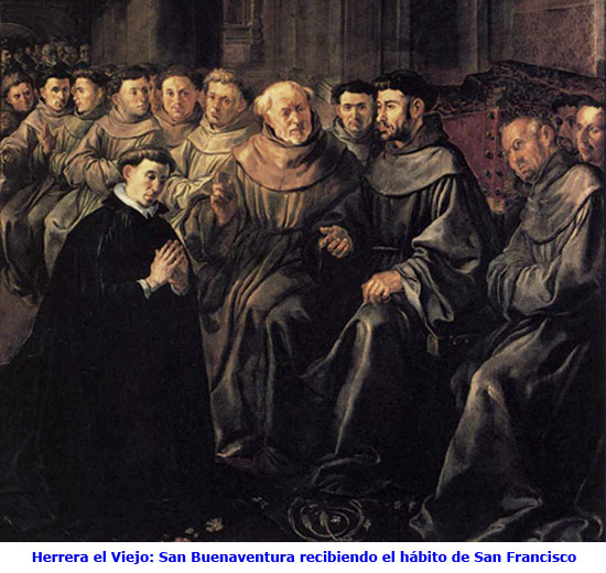 N O T A S [1] Dante, Paraíso XII, 127-129. [2] LM, Prólogo 3. [3] Cf. J. Ratzinger, La teología de la historia de san Buenaventura. Madrid, Ediciones encuentro, 2004, 110 ss. [4] San Buenaventura, Reducción de las ciencias a la teología (De reductione artium ad theologiam), n. 25. En Obras de San Buenaventura, edición bilingüe, Tomo I, ed. L. Amorós, B. Aperribay, M. Oromí. Madrid, BAC, 19552, pp. 666-667: «Cum enim Deus sit sursum, necesse est, quod apex ipsius mentis sursum erigatur». [5] San Buenaventura, Itinerario de la mente a Dios (Itinerarium mentis in Deum), Prólogo, n. 4. En Obras de San Buenaventura, edición bilingüe, Tomo I, ed. L. Amorós, B. Aperribay, M. Oromí. Madrid, BAC, 19552, pág. 561. [6] San Buenaventura, Itinerario de la mente a Dios..., IV, 4, pág. 607: «in quibus habitat per dona Affluentissimae caritatis». [7] San Buenaventura, Itinerario de la mente a Dios..., I, 10, pág. 571. [8] San Buenaventura, Itinerario de la mente a Dios..., I, 15, pág. 575s. [9] San Buenaventura, Sermo XVI, Dominica I Adv., en Opera omnia, IX, 40a. [Cf. Selecciones de Franciscanismo vol. XXXIX, n. 115 (2010) 87-91] |