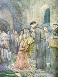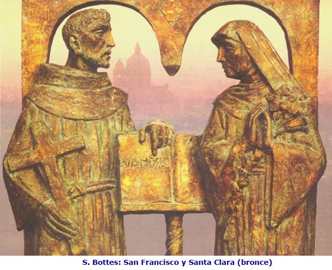 . | [Para tener a mano los Escritos de Santa Clara pulse este enlace. En las notas damos amplios fragmentos de su Testamento] Las páginas que siguen quieren ser una «lectura teológica» del Testamento de santa Clara de Asís (TestCl), sin entrar en la cuestión crítica de su entera autenticidad, aún por resolver. Es decir, una lectura que tenga en cuenta la experiencia de fe que movió su pluma al escribir y que le hizo escribir lo que escribió. Dicho de otra forma: leer el Testamento subrayando los artículos de la fe o del credo que Clara destaca y acentúa en este escrito suyo, sin duda el más rico teológicamente, el que más artículos de la experiencia de su fe contiene y proclama. Lo que no quiere decir que Clara se lo propusiese. Dejó, sencillamente, hablar a su corazón y a su fe... y nos transmitió su experiencia cristiana. Una experiencia que no es, a pesar de lo dicho, de una gran abundancia. Como se verá, Clara juega con pocos elementos de lo cristiano; pero juega limpio, a fondo, con decisión. Es muy clara, va muy al blanco y al centro de lo cristiano. Francisco, su jardinero, por ejemplo, es más abundante en su Testamento. Pienso en sus artículos de «el Señor me condujo en medio de los leprosos... El Señor me dio una fe tal en las iglesias... El Señor me dio una fe tan grande en los sacerdotes... Quiero que estos santísimos misterios [el cuerpo y sangre del Señor] sean honrados y venerados por encima de todo y colocados en lugares preciosos. Y los santísimos nombres y sus palabras escritas quiero recogerlos y ruego que se recojan y se coloquen en lugar decoroso. Y también a todos los teólogos y a los que nos administran las santísimas palabras divinas, debemos honrar y tener en veneración... El Altísimo mismo me reveló que debía vivir según la forma del santo Evangelio», etc. (Test 2. 4. 6. 11-14). Clara no abarca tanto. Le basta con subrayar la misericordia y gracia madrugadora del Padre de las misericordias, deletreada temblorosamente en la inesperada entrega del Hijo de Dios hecho camino para nosotros con su pobreza y humildad, para saber todo lo que hay que saber: ponerse de rodillas y seguir la pobreza y humildad del amado Hijo.[1] I. CÓMO HACER LA LECTURA Si, como hemos dicho, la lectura teológica del Testamento de Clara consiste en subrayar los artículos de su experiencia de fe, que Clara proclama en el Testamento, la forma mejor de hacer dicha lectura es la de ir comentando, sin prisas, cada uno de dichos artículos. Caben, por supuesto, otras formas de leer el Testamento. Por ejemplo, siguiendo la división a que se presta fácilmente el propio texto: a) la vocación, don del Padre para los demás, vv. 1-23; b) narración de la vocación de Clara y de sus hermanas, vv. 24-55; c) exhortación a la vida de continua conversión, vv. 56-79. Esta lectura permite hacerse con una visión lineal de lo que fue la vocación y forma de vida de Clara junto con sus hermanas. Nuestra lectura tendrá la ventaja de ser como una espiral que, al volver repetidamente sobre el mismo centro, conseguirá que profundicemos mejor en la experiencia de fe de Clara. II. NUESTRA LECTURA Subrayar y comentar todos los temas o artículos de la fe de cuya experiencia toma nota Clara en el Testamento, nos llevaría demasiado lejos y nos alargaría excesivamente. Nos limitaremos por eso a los más principales y destacados. 1. EL PADRE DE NUESTRO SEÑOR JESUCRISTO