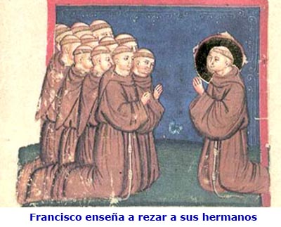 DESARROLLO Para darse una idea, al menos aproximada, de la oración en la Orden minorítica de los comienzos es conveniente partir del pasaje del Testamento, en el que Francisco echa una mirada retrospectiva sobre la evolución de su «Fraternidad». Llevada a cabo la «salida» del siglo, el Pobrecillo se inició en la oración con la ayuda de una antífona y de un responsorio utilizados en la fiesta de la Invención de la santa Cruz, el 3 de mayo:[2] «Te adoramos, Señor Jesucristo, también en todas tus iglesias que hay en el mundo entero, y te bendecimos, porque por tu santa cruz redimiste al mundo» (Test 5). Además del Padre nuestro, esta breve oración de adoración a la cruz servirá como fórmula para iniciar a los primeros hermanos en la práctica de la oración continua. Es de notar el acento puesto por la piedad franciscana primitiva sobre el misterio central de la redención, así como también la aspiración característica de la mente cósmica del Santo que se extiende a todos los lugares de culto esparcidos por el mundo, para expresar el tributo de adoración y de amor. Francisco, también en el Testamento, atestigua una fase de desarrollo ligeramente más avanzado, diciendo: «El Oficio lo decíamos los clérigos al modo de los otros clérigos, y los laicos decían el Padre nuestro; y bien gustosamente permanecíamos en las iglesias» (Test 18). Para captar más cabalmente el rasgo autobiográfico, es necesario tener presentes dos elementos históricos importantes. Por una parte, Francisco, de pequeño, entre los nueve y los diez años de edad aproximadamente, frecuentó la «Schola minor» erigida en la iglesia parroquial de San Jorge de Asís. Allí, bajo la guía de un clérigo de la Colegiata y con la ayuda del Salterio, aprendió a leer y a escribir. Este abecedario sacro y el método de enseñanza marcadamente mnemotécnico, comúnmente seguidos en aquel entonces, explica cómo el que sabía leer, conociera fácilmente de memoria todo el Salterio. Ahora bien, al que en la Edad Media había alcanzado aquel grado mínimo de instrucción que le hacía capaz de leer, se le llamaba «clérigo», no en sentido canónico, como es evidente, sino cultural, puesto que la cultura era de hecho un patrimonio clerical. Por otra parte, la fraternidad minorítica se distinguía netamente de las órdenes monásticas anteriores por su carácter de vida itinerante, como lo recogió admirablemente y en pocas líneas Jacobo de Vitry en su Historia orientalis: Los Hermanos Menores «son enviados a predicar de dos en dos, como precursores de la paz del Señor y de su segunda venida. Estos pobres de Cristo no llevan ni bolsa para el camino, ni alforjas, ni pan, ni dinero en sus cintos; no poseen oro ni plata, ni llevan calzado en sus pies (Lc 10,4). A ningún hermano de esta Orden le está permitido poseer nada. No tienen monasterios ni iglesias; ni campos, ni viñas, ni ganado; ni casas, ni otras posesiones; ni dónde reclinar su cabeza».[3] Tras estas premisas, no cuesta nada comprender el testimonio del Testamento sobre la vida litúrgica inicial. Los hermanos de la época primitiva, en sus continuos viajes misioneros, se paraban gustosos en la iglesia de los sacerdotes para asociarse a la celebración del Oficio tanto nocturno como diurno, recitando de memoria o con un salterio personal los salmos y escuchando las lecturas y las otras partes variables. Las pequeñísimas comitivas de predicadores de la «Religión de los verdaderos pobres del Crucificado», como la llama el mismo Jacobo de Vitry en la obra citada, ni poseían los múltiples libros corales manuscritos, ni, si los hubiesen tenido, les hubiera sido posible llevarlos consigo dado su peso. Por lo demás, los breviarios portátiles eran entonces todavía rarísimos por su coste prohibitivo, debido tanto al material de que se hacían como también al tiempo requerido para su transcripción. La situación normal de aquellos tiempos está recogida al vivo en el episodio que acaeció en Florencia, como refieren los Tres Compañeros (cf. TC 38). Fray Bernardo de Quintaval y su compañero, desconocido, apenas consiguieron de una mujer que les permitiera pasar la noche junto al horno bajo el portal de su casa. Allí durmieron «sin otro calor que el divino y sin otro abrigo que el de dama Pobreza», hasta que «a la hora de maitines se fueron a la iglesia más próxima para asistir al Oficio». Con el ingreso en la Orden de sacerdotes, como fray Silvestre (2 Cel 109) y fray León (cf. 1 Cel 102), así como el de cierto número de hombres letrados hacia 1215, nació en la Fraternidad la exigencia de una celebración coral propia, tanto más que en el santuario de Santa María de los Ángeles la joven comunidad había encontrado su centro religioso estable. Pero sería anacrónico suponer que en la Porciúncula y en otros eremitorios los hermanos tuviesen entonces la posibilidad real de cantar el Oficio divino de forma completa y solemne. Así, por casualidad, nos enteramos de que, durante el vicariato general de Pedro Catáneo, en 1220/21, la familia religiosa de Santa María de los Ángeles disponía de un único ejemplar del Nuevo Testamento, del que se servían los hermanos para las lecturas de Maitines. El compilador anota expresamente: «En aquel tiempo, los hermanos no tenían breviarios, ni siquiera muchos salterios» (LP 93). Otra noticia histórica, que por su carácter ocasional lleva el sello de la autenticidad, refiere cómo solía san Francisco concluir los primeros Capítulos generales. «Acabado el Capítulo, daba la bendición a los hermanos y destinaba a cada uno a su provincia... Una vez recibida la bendición, marchaban con gran alegría por el mundo como peregrinos y forasteros, sin llevar otra cosa para el camino que los libros para rezar las horas» (TC 59). Evidentemente, se trataba sobre todo de los salterios, tal vez de algún ejemplar del Nuevo Testamento y de algún breviario incompleto. La línea de d