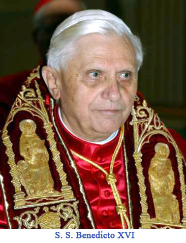 SANTIDAD El cardenal Joseph Ratzinger, Papa Benedicto XVI, nació en Marktl am Inn, diócesis de Passau (Alemania), el 16 de abril de 1927 (Sábado santo), y fue bautizado ese mismo día. Su padre, comisario de la gendarmería, provenía de una antigua familia de agricultores de la Baja Baviera, de condiciones económicas más bien modestas. Su madre era hija de artesanos de Rimsting, en el lago Chiem, y antes de casarse trabajó de cocinera en varios hoteles. Pasó su infancia y su adolescencia en Traunstein, una pequeña localidad cerca de la frontera con Austria, a treinta kilómetros de Salzburgo. En ese marco, que él mismo ha definido "mozartiano", recibió su formación cristiana, humana y cultural. El período de su juventud no fue fácil. La fe y la educación de su familia lo preparó para afrontar la dura experiencia de aquellos tiempos, en los que el régimen nazi mantenía un clima de fuerte hostilidad contra la Iglesia católica. El joven Joseph vio cómo los nazis golpeaban al párroco antes de la celebración de la santa misa. Precisamente en esa compleja situación, descubrió la belleza y la verdad de la fe en Cristo; para ello fue fundamental la actitud de su familia, que siempre dio un claro testimonio de bondad y esperanza, arraigada en la pertenencia consciente a la Iglesia. En los últimos meses de la segunda guerra mundial fue enrolado en los servicios auxiliares antiaéreos. De 1946 a 1951 estudió filosofía y teología en la Escuela superior de Freising y en la universidad de Munich. Recibió la ordenación sacerdotal el 29 de junio de 1951. Un año después, inició su actividad de profesor en la Escuela superior de Freising. En 1953 se doctoró en teología con la tesis: "Pueblo y casa de Dios en la doctrina de la Iglesia de san Agustín". Cuatro años más tarde, bajo la dirección del conocido profesor de teología fundamental Gottlieb Söhngen, obtuvo la habilitación para la enseñanza con una disertación sobre: "La teología de la historia de san Buenaventura". Tras ejercer el cargo de profesor de teología dogmática y fundamental en la Escuela superior de filosofía y teología de Freising, prosiguió su actividad de enseñanza en Bonn, de 1959 a 1963; en Münster, de 1963 a 1966; y en Tubinga, de 1966 a 1969. En este último año pasó a ser catedrático de dogmática e historia del dogma en la Universidad de Ratisbona, donde ocupó también el cargo de vicepresidente de la Universidad. De 1962 a 1965 dio una notable contribución al concilio Vaticano II como "experto"; acudió como consultor teológico del cardenal Joseph Frings, arzobispo de Colonia. Su intensa actividad científica lo llevó a desempeñar importantes cargos al servicio de la Conferencia episcopal alemana y en la Comisión teológica internacional. En 1972, juntamente con Hans Urs von Balthasar, Henri de Lubac y otros grandes teólogos, inició la revista de teología "Communio". El 24 de marzo de 1977, el Papa Pablo VI lo nombró arzobispo de Munich y Freising. El 28 de mayo sucesivo recibió la consagración episcopal. Fue el primer sacerdote diocesano, después de 80 años, que asumió el gobierno pastoral de la gran archidiócesis bávara. Escogió como lema episcopal: "Colaborador de la verdad". Él mismo explicó: "Por un lado, me parecía que esa era la relación entre mi tarea previa como profesor y mi nueva misión. A pesar de los diferentes modos, lo que estaba en juego y seguía estándolo era seguir la verdad, estar a su servicio. Y, por otro, escogí ese lema porque en el mundo de hoy el tema de la verdad se omite casi totalmente, pues parece algo demasiado grande para el hombre y, sin embargo, todo se desmorona si falta la verdad". Pablo VI lo creó cardenal, del título presbiteral de Santa María de la Consolación en Tiburtino, en el consistorio del 27 de junio de ese mismo año. En 1978 participó en el Cónclave, celebrado del 25 al 26 de agosto, que eligió a Juan Pablo I, el cual lo nombró enviado especial suyo al III Congreso mariológico internacional, celebrado en Guayaquil (Ecuador), del 16 al 24 de septiembre. En el mes de octubre de ese mismo año participó también en el Cónclave que eligió a Juan Pablo II. Actuó de relator en la V Asamblea general ordinaria del Sínodo de los obispos, celebrada en 1980, sobre el tema: "Misión de la familia cristiana en el mundo contemporáneo", y de presidente delegado de la VI Asamblea general ordinaria, celebrada en 1983, sobre "La reconciliación y la penitencia en la misión de la Iglesia". Juan Pablo II lo nombró prefecto de la Congregación para la doctrina de la fe, y presidente de la Pontificia Comisión bíblica y de la Comisión teológica internacional el 25 de noviembre de 1981. El 15 de febrero de 1982 renunció al gobierno pastoral de la arquidiócesis de Munich y Freising, y el Papa lo elevó al orden cardenalicio de los obispos, asignándole la sede suburbicaria de Velletri-Segni, el 5 de abril de 1993. Fue presidente de la comisión para la preparación del Catecismo de la Iglesia católica, que, después de seis años de trabajo (1986-1992), presentó al Santo Padre el nuevo Catecismo. El Santo Padre, el 6 de noviembre de 1998, aprobó la elección del cardenal Ratzinger como vicedecano del Colegio cardenalicio, realizada por los cardenales del orden de los obispos. Y el 30 de noviembre de 2002, aprobó su elección como decano; con dicho cargo le fue asignada, además, la sede suburbicaria de Ostia. En la Curia romana fue miembro de muchos Consejos, Congregaciones, Tribunales y Comisiones. Entre sus numerosas publicaciones ocupan un lugar destacado los libros Introducción al Cristianismo, recopilación de lecciones universitarias publicadas en 1968 sobre la profesión de fe apostólica, y Dogma y revelación (1973), antología de ensayos, predicaciones y reflexiones, dedicadas a la pastoral. Obtuvo gran resonancia el discurso que pronunció ante la Academia católica bávara sobre el tema ¿Po