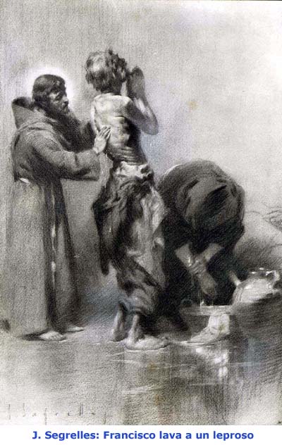 Ignoramos cuanto duró su estancia en Roma. Tal vez sólo un día. Los biógrafos se limitan a decir que, tan pronto como cumplió su deseo de participar del pan de los mendigos, depuso los harapos y, volviendo a tomar sus propios vestidos, se volvió a su patria. Ya había probado personalmente la pobreza, llevando andrajos sobre sus carnes y comido el pan de limosna. Cierto, al volver a vestir sus ricos hábitos ordinarios y al sentarse de nuevo en la opuesta mesa de su hogar paterno, no pudo menos que sentirse cómodo y aliviado; pero, en cambio, le quedaba el placer inefable de haber saboreado el encanto espiritual que produce la falta de lo necesario y la ausencia de todo bien temporal, como no fuese un sorbo de agua de la fuente, un pedazo de pan de la caridad y, por todo lecho, la tierra desnuda bajo el azul del cielo al resplandor de las estrellas. ¿A qué afanarse tanto por las cosas de este mundo, por acumular riquezas, poseer casas y jardines, muchedumbre de siervos y ganados, si con tan poco basta para vivir? ¿No ha dicho el Evangelio «bienaventurados los pobres»? ¿No ha enseñado que «es más fácil que un camello pase por el ojo de una aguja que un rico entre en el reino de los cielos»? Tales pensamientos bullían en la mente de Francisco a su vuelta de Roma, obligándole a recurrir a Dios, con más fervor que antes, en demanda de luz y dirección. De los hombres bien sabía que nada podía esperar, pues hasta el amigo que solía acompañarle a la gruta había ido poco a poco retirándosele en vista de que el decantado tesoro de cuyo hallazgo tanto se jactaba Francisco, no aparecía. La única persona a quien, de cuando en cuando, descubría su corazón era el obispo de Asís, Guido, que parece haber sido su confesor ordinario ya desde los primeros pasos de su nueva vida. Así lo indica la Leyenda de los Tres Compañeros: «El obispo de la ciudad de Asís, a quien Francisco acudía con frecuencia para aconsejarse de él...» (TC 35; 10). Según el Espejo de Perfección, Francisco dijo, poco antes de su muerte, a cierto «señor Buenaventura» de Siena: «Desde el comienzo de mi conversión puso el Señor en boca del obispo de Asís sus palabras para que me aconsejara y confortara en el servicio de Cristo» (EP 10). Leemos asimismo en el Anónimo de Perusa: «Grandes y pequeños, hombres y mujeres, todos despreciaban y escarnecían a los nuevos penitentes. La única excepción era el obispo de Asís, a quien acudía con frecuencia Francisco en demanda de consejo» (AP 17). Todos estos pasajes, y otros, demuestran que Francisco mantuvo, desde los comienzos de su vida religiosa, muy íntimas y cordiales relaciones con su obispo. Pero los biógrafos del Santo no nos dicen nada sobre este período de meditación callada y solitaria; en cambio él mismo nos ha dejado en su Testamento, escrito pocos años antes de morir, preciosas confesiones, por ejemplo ésta: «El Señor me dio la gracia de que así comenzase a hacer penitencia; porque, como yo estuviese entonces envuelto en pecados, me era muy amargo ver a los leprosos; pero el Señor me trajo a ellos, y usé de misericordia con ellos». La condición de los leprosos en la Edad Media era mucho mejor que la de todos los demás enfermos y pobres; porque, en vista de cierto pasaje de Isaías (53,4), se les consideraba como símbolos vivos del divino Salvador más que a todo el resto de la humanidad paciente. Gregorio el Grande cuenta la historia del monje Martirio, quien, habiendo encontrado por el camino a un leproso agobiado de dolores y falto de fuerzas para continuar su viaje, le envolvió en su propio manto y, tomándole en brazos, se lo llevaba a su convento, cuando he aquí que de repente el leproso se trueca en Jesucristo, quien, antes de desaparecer, da su bendición al monje, añadiendo: «Martirio, tú no te has avergonzado de mí en la tierra; yo tampoco me avergonzaré de ti en el cielo». Análogos casos se cuentan de S. Julián el hospitalario, del Papa IX, del bienaventurado Columbino, etc. Eran, pues, los leprosos de la Edad Media objeto de una solicitud de todo en todo particular; eran los pobres preferidos por la caridad tanto privada como pública. Había toda una orden de caballería, la de San Lázaro, fundada especialmente para cuidar de ellos. La Europa entera estaba sembrada de lazaretos; a fines del siglo XIII ascendía a 19.000 el número de estos benditos asilos, donde los leprosos vivían en una especie de comunidad conventual. Así y todo, aquellos infelices arrastraban una vida llena de miseria y de tristeza, excluidos como estaban de la sociedad en todos los países, en virtud de leyes severas que les vedaban tener relación alguna con las demás gentes. Como en toda Italia, había también en Asís un hospital de leprosos, instalado fuera y a cierta distancia de las murallas, sobre el camino que va a la Porciúncula, más o menos en el mismo sitio que hoy ocupa el grandioso edificio denominado Casa Gualdi. Dicho hospital se llamaba de «San Salvador de los Muros» y estaba a cargo de una orden recién fundada, bajo Alejandro III, expresamente para el cuidado de los leprosos; la orden de los Crucíferos. Muchas veces había pasado Francisco por delante de esta casa; pero siempre, sólo al verla, experimentaba profundo disgusto. De buen grado daba limosna para los leprosos, pero a condición de que otro se encargara de llevársela. Cuando el viento soplaba del lado del hospital y llegaba hasta San Francisco el hedor repugnante de la fatal enfermedad, él al punto volvía el rostro y echaba a correr, tapándose las narices (TC 11). Aquí estaba, pues, su mayor debilidad; aquí era donde iba a librar más recia batalla y a obtener más espléndida victoria. Un día, estando en su acostumbrada oración, oyó, por fin, la anhelada respuesta, y fue la siguiente: «Francisco, si quieres conocer mi voluntad, has de despreciar y aborrecer cuanto aman y apetecen tus sentidos. Cuando esto hayas logrado
