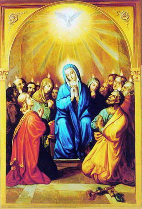 1. Recorriendo el itinerario de la vida de la Virgen María, el concilio Vaticano II recuerda su presencia en la comunidad que espera Pentecostés: «Dios no quiso manifestar solemnemente el misterio de la salvación humana antes de enviar el Espíritu prometido por Cristo. Por eso vemos a los Apóstoles, antes del día de Pentecostés, "perseverar en la oración unidos, junto con algunas mujeres, con María, la Madre de Jesús, y sus parientes" (Hch 1,14). María pedía con sus oraciones el don del Espíritu, que en la Anunciación la había cubierto con su sombra» (Lumen gentium, 59). La primera comunidad constituye el preludio del nacimiento de la Iglesia; la presencia de la Virgen contribuye a delinear su rostro definitivo, fruto del don de Pentecostés. 2. En la atmósfera de espera que reinaba en el cenáculo después de la Ascensión, ¿cuál era la posición de María con respecto a la venida del Espíritu Santo? El Concilio subraya expresamente su presencia, en oración, con vistas a la efusión del Paráclito: María implora «con sus oraciones el don del Espíritu». Esta afirmación resulta muy significativa, pues en la Anunciación el Espíritu Santo ya había venido sobre ella, cubriéndola con su sombra y dando origen a la encarnación del Verbo. Al haber hecho ya una experiencia totalmente singular sobre la eficacia de ese don, la Virgen santísima estaba en condiciones de poderlo apreciar más que cualquier otra persona. En efecto, a la intervención misteriosa del Espíritu debía ella su maternidad, que la convirtió en puerta de ingreso del Salvador en el mundo. A diferencia de los que se hallaban presentes en el cenáculo en trepidante espera, ella, plenamente consciente de la importancia de la promesa de su Hijo a los discípulos (cf. Jn 14,16), ayudaba a la comunidad a prepararse adecuadamente a la venida del Paráclito. Por ello, su singular experiencia, a la vez que la impulsaba a desear ardientemente la venida del Espíritu, la comprometía también a preparar la mente y el corazón de los que estaban a su lado. 3. Durante esa oración en el cenáculo, en actitud de profunda comunión con los Apóstoles, con algunas mujeres y con los hermanos de Jesús, la Madre del Señor invoca el don del Espíritu para sí misma y para la comunidad. Era oportuno que la primera efusión del Espíritu sobre ella, que tuvo lugar con miras a su maternidad divina, fuera renovada y reforzada. En efecto, al pie de la cruz, María fue revestida con una nueva maternidad, con respecto a los discípulos de Jesús. Precisamente esta misión exigía un renovado don del Espíritu. Por consiguiente, la Virgen lo deseaba con vistas a la fecundidad de su maternidad espiritual. Mientras en el momento de la Encarnación el Espíritu Santo había descendido sobre ella, como persona llamada a participar dignamente en el gran misterio, ahora todo se realiza en función de la Iglesia, de la que María está llamada a ser ejemplo, modelo y madre. En la Iglesia y para la Iglesia, ella, recordando la promesa de Jesús, espera Pentecostés e implora para todos abundantes dones, según la personalidad y la misión de cada uno. 4. En la comunidad cristiana la oración de María reviste un significado peculiar: favorece la venida del Espíritu, solicitando su acción en el corazón de los discípulos y en el mundo. De la misma manera que, en la Encarnación, el Espíritu había formado en su seno virginal el cuerpo físico de Cristo, así ahora, en el cenáculo, el mismo Espíritu viene para animar su Cuerpo místico. Por tanto, Pentecostés es fruto también de la incesante oración de la Virgen, que el Paráclito acoge con favor singular, porque es expresión del amor materno de ella hacia los discípulos del Señor. Contemplando la poderosa intercesión de María que espera al Espíritu Santo, los cristianos de todos los tiempos, en su largo y arduo camino hacia la salvación, recurren a menudo a su intercesión para recibir con mayor abundancia los dones del Paráclito. 5. Respondiendo a las plegarias de la Virgen y de la comunidad reunida en el cenáculo el día de Pentecostés, el Espíritu Santo colma a María y a los presentes con la plenitud de sus dones, obrando en ellos una profunda transformación con vistas a la difusión de la buena nueva. A la Madre de Cristo y a los discípulos se les concede una nueva fuerza y un nuevo dinamismo apostólico para el crecimiento de la Iglesia. En particular, la efusión del Espíritu lleva a María a ejercer su maternidad espiritual de modo singular, mediante su presencia, su caridad y su testimonio de fe. En la Iglesia que nace, ella entrega a los discípulos, como tesoro inestimable, sus recuerdos sobre la Encarnación, sobre la infancia, sobre la vida oculta y sobre la misión de su Hijo divino, contribuyendo a darlo a conocer y a fortalecer la fe de los creyentes. No tenemos ninguna información sobre la actividad de María en la Iglesia primitiva, pero cabe suponer que, incluso después de Pentecostés, ella siguió llevando una vida oculta y discreta, vigilante y eficaz. Iluminada y guiada por el Espíritu, ejerció una profunda influencia en la comunidad de los discípulos del Señor. [L'Osservatore Romano, edición semanal en lengua española, del 30-V-97] * * * * * La dormición de la Madre de Dios 1. Sobre la conclusión de la vida terrena de María, el Concilio cita las palabras de la bula de definición del dogma de la Asunción y afirma: «La Virgen inmaculada, preservada inmune de toda mancha de pecado original, terminado el curso de su vida en la tierra, fue llevada en cuerpo y alma a la gloria del cielo» (Lumen gentium, 59). Con esta fórmula, la constitución dogmática Lumen gentium, siguiendo a mi venerado predecesor Pío XII, no se pronuncia sobre la cuestión de la muerte de María. Sin embargo, Pío XII no pretendió negar el hecho de la muerte; solamente no juzgó oportuno afirmar solemnemente, como verdad que todos los creyentes de