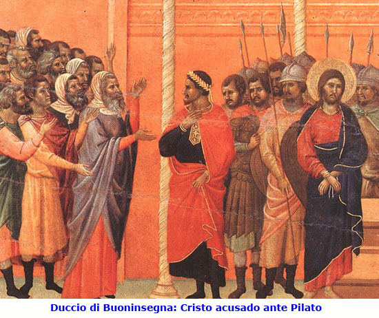 MEDITACIÓN La sentencia de Pilato fue dictada bajo la presión de los sacerdotes y de la multitud. La condena a muerte por crucifixión debería haber satisfecho sus pasiones y ser la respuesta al grito: «¡Crucifícalo! ¡Crucifícalo!» (Mc 15,13-14, etc.). El pretor romano pensó que podría eludir el dictar sentencia lavándose las manos, como se había desentendido antes de las palabras de Cristo cuando éste identificó su reino con la verdad, con el testimonio de la verdad (Jn 18,38). En uno y otro caso Pilato buscaba conservar la independencia, mantenerse en cierto modo «al margen». Pero eran sólo apariencias. La cruz a la que fue condenado Jesús de Nazaret (Jn 19,16), así como su verdad del reino (Jn 18,36-37), debían afectar profundamente al alma del pretor romano. Esta fue y es una realidad, frente a la cual no se puede permanecer indiferente o mantenerse al margen. El hecho de que a Jesús, Hijo de Dios, se le pregunte por su reino, y que por esto sea juzgado por el hombre y condenado a muerte, constituye el principio del testimonio final de Dios que tanto amó al mundo (cf. Jn 3,16). También nosotros nos encontramos ante este testimonio, y sabemos que no nos es lícito lavarnos las manos. ACLAMACIONES Jesús de Nazaret, condenado a muerte