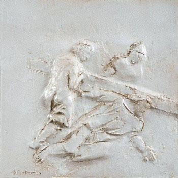 Jesús cae. Las heridas, el peso de la cruz, el camino abrupto y cuesta arriba. Y el gentío sofocante. Pero no es sólo esto lo que lo ha postrado así. Tal vez es el peso de la tragedia que se abre paso en su vida. Ya no se consigue ver a Dios en Jesús, hombre que se muestra tan frágil, que tropieza y cae.