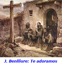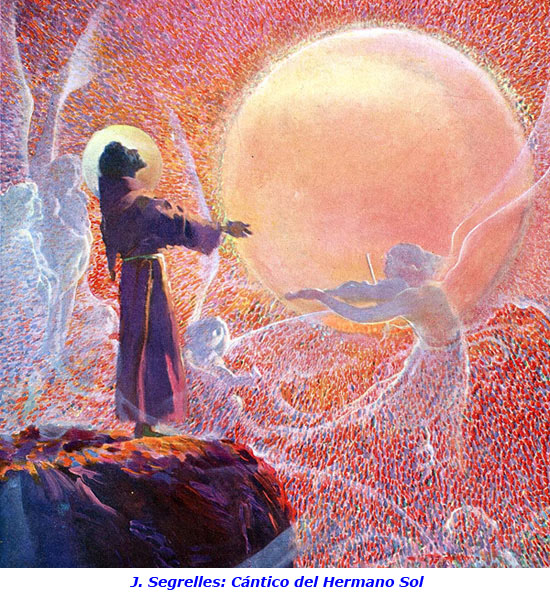 Pero quizá nada revela con más decisión y claridad lo que venimos diciendo que el Oficio de la Pasión. En él, basta abrirlo, el orante es Jesucristo en esa pascua prolongada de los distintos misterios de su vida, a través de los cuales se la entregó al Padre, dejándonosla también a nosotros. Pues bien, Francisco lo recitaba diariamente. Acercaba su corazón y sus labios, al tiempo que sus ojos recordaban las escenas, a la angustia, al miedo, a la soledad, a la confianza, a la alegría, a la alabanza, etc., del Hijo de Dios hecho hombre. Era la comunión de Francisco con el misterio de la salvación. La oración que Cristo estrenó e introdujo en la tierra, el Padrenuestro -¿por qué el énfasis de Francisco al recordarla? (1 R 22; 2CtaF)-, encontraba diariamente un corazón despojado donde resonar. Aquí, pues, toda la razón de ser de la oración de Francisco. Las demás motivaciones que puedan señalarse y que señalaremos, a ésta fundamental se reducen. Aun cuando sus oraciones tengan al parecer, a veces, una dirección más trinitaria, Francisco ora siempre cristocéntricamente, cristológicamente. En consecuencia, por tanto, Francisco no ora desde su pura psicología o talante subjetivo, por muy presente que necesariamente esté; su oración es siempre una oración provocada, impuesta y a su pesar, diríamos, por el Ágape de Dios manifestado en Cristo Jesús. Establecido el origen radical, fontal de la oración de Francisco, cabe ya precisar otras particulares motivaciones. a) Los distintos misterios de la historia de la salvación, de los que Francisco recuerda los principales en el cap. 23 de la Regla no bulada, en la Carta a los fieles y en el Oficio de la Pasión, le revelan a Dios trino en su historia de salvación de siempre, incomprensiblemente cercano y a favor del hombre, lo que provoca la oración, la alabanza, la acción de gracias, etc., de Francisco. b) Las distintas intervenciones de Dios Salvador en la historia de la salvación que se prolonga en su vida y en la de los suyos. Su Testamento es el escrito que, sin ser el único, da fe mejor de la conciencia que Francisco tenía de esta acción constante y actual, de siempre y de ahora, que nos hace hacer y nos hace colaboradores responsables suyos. «El Señor me dio... el Señor me condujo... el Señor me reveló...». Desde esta fe en la actividad de Dios que llama a ser o a mejor ser a sus criaturas, Francisco se siente acorralado por Dios; su dependencia se le revela agotadoramente vital, y sabe de una vez para siempre que la vida no puede ser otra cosa que devolución de lo recibido de Dios y a Dios (Adm 11 y 19; 1 R 17). La vida debe agotarse en el don, en la alabanza... Por eso, estas actitudes surgen inesperadas, repetidas y constantes en cada página de su vida. Acción de gracias, por ejemplo, por la vocación de Fr. Bernardo (TC 27); por los demás compañeros (1 Cel 27); por los hermanos menores españoles (2 Cel 178). c) La palabra de Dios provoca también la oración de Francisco. Vive rumiándola (1 Cel 84; 2 Cel 105). La frecuentó ansiosa e insistentemente, sedienta y sagazmente, afirma Celano (1 Cel 84). Hizo del corazón arca para guardarla (1 Cel 96), tanto que la Palabra se le convirtió al fin en su propio refugio, lugar de su morada (2 Cel 104). Es de subrayar su meditación, su atención, la avidez con que se abría a la palabra de Dios y la tenacidad con que la retenía (1 Cel 22), que rompía necesariamente en oración bajo todas sus formas, como respuesta y devolución al Señor del don de la Palabra (Adm 7; TC 29). d) La Eucaristía, renovación de la entrega total de Dios al hombre (Adm 1; CtaO), plenitud por lo mismo de su fidelidad, de su incansable amor al hombre infiel -«diariamentese humilla, como cuando desde el trono real vino al útero de la Virgen» (Adm 1,16)-, es otra de las fuentes irrestañables del asombro, admiración y oración de Francisco. No terminaríamos citando y comentando textos (Adm 1; 2CtaF; CtaO, etc.). e) El misterio salvador de Dios en Cristo nos revela el misterio del hombre y de lo creado. Por eso mismo, la oración de Francisco tomará pie, más de una vez, en su propio ser de criatura para cantar a Dios. Concienzado, ante el misterio de la generosidad divina, de su absoluta dependencia (Adm 2 y 5; 1 R 17 y 23), de su ser pecador (1 R 23; 2CtaF), del milagro permanente que supone nuestro ser ante Dios, la oración en toda su riqueza abrirá continuamente, necesariamente sus labios para proclamar sin cesar la alabanza del Creador y Redentor del hombre (Adm 5; 1 R 23; 2CtaF; Cánt). Y del Creador y Redentor de la creación entera. Al narrar los biógrafos la actitud de Francisco frente a la creación, señalan todos el estupor del Pobrecillo ante la belleza del Creador que ha vestido de hermosura las cosas y que provocaba en él una alabanza incesante (1 Cel 80). El contenido de su canto de alabanza y la letra, nos lo ha dejado en el Cántico al Hermano Sol. En la intención de Francisco, el Cántico es el reconocimiento de la bondad de Dios en Cristo a través de las criaturas. Las dos intervenciones de Dios en favor de los hombres son para Francisco un único designio de amor, son el bien, todo bien, sumo bien, el único bueno (1 R 23). Así nos encontramos con la afirmación que hacíamos al principio de este apartado: todos los particulares puntos de partida posibles de la oración de Francisco se resumen para su fe en el misterio del verdadero y santo amor (1 R 23) de Dios en Cristo. Su oración es radicalmente cristológica, como toda su existencia y opción evangélica. Y por eso mismo será trinitaria: reconoce como meta al «santísimo Padre del cielo», como impulsor al Espíritu Santo, y como orante al Hijo amado (1 R 23). Y por eso mismo también, su oración es la fe y la experiencia asombrada, gozosa, estremecida del «¡Oh cuán glorioso y santo y grande, tener un Padre en los cielos! ¡Oh cuán santo, consolador, bello y admirable, t