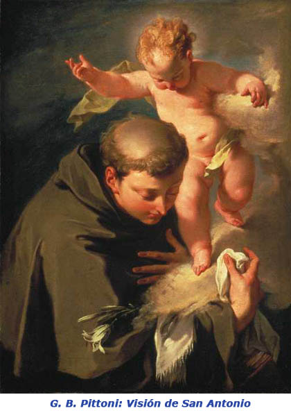 El San Antonio del pueblo es el Santo que resucita los muertos, que cura las enfermedades, que está dotado del don de bilocación, que habla a los peces, que convierte a los herejes, que aligera el bolsillo de los ricos para socorrer a los pobres necesitados, que multiplica las provisiones, que halla las cosas perdidas, que no defrauda las esperanzas de las que quieren contraer matrimonio, que conversa amigablemente con Jesús Niño, que reposa en sus brazos, y del cual ha recibido el poder de obrar toda suerte de milagros en favor de sus devotos. Querer cambiar el alma del pueblo respecto del Santo sería empresa descabellada e imposible. La crítica histórica, con sus aciertos y fracasos, ha emprendido la tarea de examinar a fondo las Leyendas Antonianas, con ánimo de deslindar el ámbito histórico del legendario, y presentarnos a San Antonio tal como fue en la realidad y no como la tradición lo ha fingido. Basada en reglas críticas o hipercríticas, dictadas por Langlois y Seignobos, De Smedt, Bernheim y Delehaye ha ido desbrozando la paja de la leyenda del grano de la historia, y las más de las veces su obra crítica, negativa casi siempre, se ha circunscrito a una autopsia fría, a una operación quirúrgica radical, dejando solamente en pie el esqueleto de los Santos «sin poner en evidencia el espíritu del héroe, revelar su alma, completar su fisonomía espiritual y suprimiendo el olor agradable de los mismos hechos rígidamente históricos» (Facchinetti). Cuando la tradición, relativamente tardía, ha consignado por escrito los milagros que se atribuyen a San Antonio en vida, ¿ha inventado simplemente tales hechos para dar pábulo a la devoción o ha recogido la tradición oral de los mismos, tal como se transmitía de boca en boca? Sería intolerable rechazar en bloque todos los milagros que se atribuyen al Santo en vida, como sería antihistórico admitirlos todos, sin pasarlos por la criba de la crítica. El examen crítico de las fuentes históricas antonianas nos llevará de la mano a la conclusión de que el Santo es un personaje histórico, plenamente ambientado en el marco de la historia y aureolado a veces con un nimbo legendario, dentro del cual ha querido considerarlo siempre el pueblo cristiano. [Sobre las Leyendas y demás fuentes biográficas de San Antonio, véase en el menú de esta misma página el estudio de Sanz Valdivieso]. En los confines de la tierra... Harto breves e imprecisas son las noticias de los primeros biógrafos sobre el nacimiento e infancia de San Antonio. Por de pronto, ninguno señala el año de su nacimiento, que por conjeturas y deducciones fijamos hacia el año 1191, aunque la mayoría de los historiadores del Santo señalan el año 1195, basados en el testimonio tardío y sospechoso del Liber Miraculorum, escrito después de 1367; en este punto adoptamos la cronología propuesta por el P. Callebaut, quien parte de la fijación de la fecha de la ordenación sacerdotal de Antonio en 1221. La Assidua dice que nació en Lisboa, ciudad situada en los confines de la tierra, en una casa cercana y al norte de la Iglesia Catedral, de padres jóvenes todavía, y a los cuales quiso Dios premiar con esta preciosa azucena. No dice cuál era el nombre de sus padres, y por lo mismo el autor de la leyenda Benignitas subsanó esta laguna, asegurando que su padre se llamaba Martín, caballero del rey Alfonso, y su madre, de condición no inferior, María. Marcos de Lisboa, siguiendo la costumbre en boga de ennoblecer a los santos, añade que Fernando, el futuro Antonio, descendía, por parte de su padre, de la familia de los Bouillon, y de parte de su madre estaba entroncado con la poderosa familia Taveira, cuyo representante principal fue Froila I, cuarto rey de Asturias. Contra estos sueños de nobleza tenemos el testimonio de Fernando (1211-1233), Conde de Flandes, hijo de Sancho I, rey de Portugal (1185-1211) y hermano de Alfonso II (1211-1223). Hallándose aquél prisionero en el Louvre de París, después de la batalla de Bouvines (1214), oyó hablar de los triunfos apostólicos de San Antonio, y, confundido, exclamó: «... ved a este santo hombre Fernando, saliendo del pueblo (de communi plebe educatum), cómo se levanta a un estado de perfección y santidad tal, que la fama de su religión ante Dios y ante los hombres está por encima de la de los portugueses y españoles». De sus palabras resulta que nuestro Fernando pertenecía a una familia aristócrata burguesa, en contraposición a los aristócratas feudales que vivían en la campaña. La leyenda Assidua, por su parte, se limita a decir que sus padres poseían cerca y al norte de la Catedral una casa digna y conforme a su estado. Los títulos auténticos de nobleza de que gozaban los padres de Fernando eran más bien de orden espiritual, ya que, según testimonio de la Raimundina, eran personas honestas. Juan Rigauld los compara a Zacarías e Isabel caminando como ellos de una manera irreprensible en todos los mandamientos y ordenanzas del Señor (Lc 1,5-6), y añade: «Si por el fruto se conoce el árbol, y por la raíz puede deducirse la naturaleza de la planta, fácil era presagiar y esperar algo muy bueno de la flor nacida de su amor de esposos». A los ocho días de su nacimiento fue bautizado en el baptisterio de la Catedral con el nombre de Fernando. Juventud lozana Los años juveniles de Fernando se deslizaron tranquilamente en el seno de la familia, convertido en el hechizo de sus padres, por ser el primogénito y por aparecer dotado de índole buena, probidad e integridad de costumbres, no dejándose arrastrar como los otros niños por la lascivia, caprichos y vanidades del mundo. Desde su más tierna edad demostró una especial devoción hacia la Santísima Virgen, a la cual se consagró, escogiéndola por institutriz, guía y sostén de su vida y muerte; más tarde, en sus Sermones desbordará el entusiasmo y devoción que el Santo siente por la Virgen. Surio dice que, 