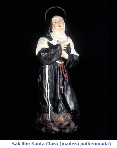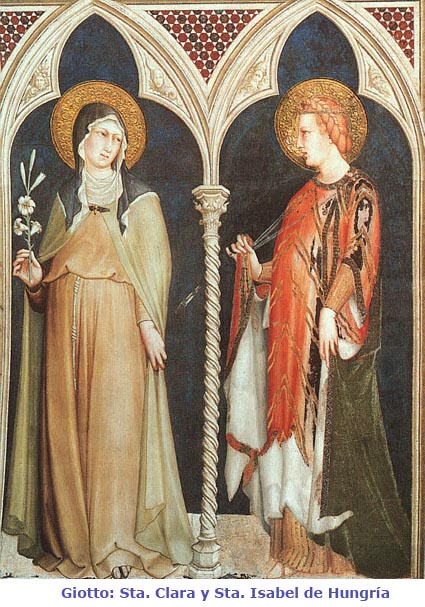 Para alcanzar este ideal, Clara escoge ir a donde Dios le llama. Por ello tendrá que abandonar el ambiente familiar, cómodo, lleno de riquezas y de seguridad, donde es amada, pero que no corresponde a sus aspiraciones. Efectivamente, desde su tierna infancia desea seguir pobremente el camino del «pobre» por excelencia, Jesucristo. Clara sentía en lo más profundo de sí misma esta llamada: abandonar las vanidades del mundo para correr a ese «encuentro» que la unirá para siempre a Jesús. Esto explica su rechazo obstinado a todas las uniones que le ofrecían los suyos y que habrían ayudado a enaltecer el blasón familiar ya de por sí bien ilustre. La elección de Clara es definitiva, está resuelta a renunciar a todo para adquirir la perla preciosa del Reino. ¿Quién conocerá jamás la profundidad del sufrimiento que experimenta su corazón y que le causa esta dolorosa separación de todo su ser de aquellos que ella estima y que le son queridos? Se necesita la gracia de la salvación para llegar ahí. Esta gracia es exigente, pero es una gracia de libertad para quien quiera comprometerse a ello. Después de haber liquidado todos sus bienes, Clara los distribuye entre los pobres que la conocían bien. De hecho, desde hacía mucho tiempo, lo sobrante de una mesa bien abastecida lo confiaba a los amigos de la casa para que lo llevaran a los más necesitados. En fin, libre de toda posesión, Clara rompe las amarras que la retenían cautiva. Huye hacia una tierra de libertad en la que encontrará a Aquel a quien pertenece todo su corazón. Confabulada con Francisco, su guía espiritual, Clara abandona el hogar familiar el Domingo de Ramos, después de haber recibido de manos del obispo Guido la palma, figura de la pascua que realizará esa misma noche entre las manos de Francisco. En la noche oscura, Clara sale de su casa teniendo por toda luz las antorchas que los hermanos de Francisco tenían en la mano. Son ellos los que deben conducirla a Nuestra Señora de los Ángeles (o Porciúncula), primera iglesia restaurada por Francisco. Allí la espera y le cortará los cabellos, ritual y signo de la consagración al Señor. A continuación, Clara, despojada de sus joyas y de sus bellas galas que llevaba en ese Domingo de Ramos, viste el hábito de penitencia. Inmediatamente, Francisco la conduce a un monasterio de benedictinas, San Pablo de Bastia, para que se inicie allí en la vida religiosa. Es entonces cuando todo comienza para Clara. Su familia, conocida la fuga, sale en su búsqueda. Clara tuvo que sufrir los asaltos de los suyos, que no aprobaban su decisión de vivir pobremente, sin ningún medio de subsistencia. Ella quería esperar de la Providencia todo lo que necesitara para sobrevivir. A los ojos del mundo, corría el peligro de carecer de lo necesario lo que jamás ocurrió. La familia de Clara, tras comprobar su irrevocable decisión y la señal manifiesta de su don al Señor, la abandonó a su elección de vida. Pero en este monasterio donde Francisco la llevó, Clara no encuentra lo que desea, es decir, una vida de sierva pobre de Cristo, despojada de todo. Al contrario, se siente sumergida de nuevo en plena opulencia y libre de toda necesidad. Entonces Francisco la dirige a Santo Ángel de Panzo, donde un grupo de mujeres vivían de limosnas, en penitencia y oración. Pero tampoco eso respondía a sus aspiraciones. Por fin, Francisco la conduce a San Damián, otra pequeña iglesia que él había reparado con sus propias manos. Allí se instala definitiva y pobremente según su deseo. Se siente, al fin, feliz de poder entregarse totalmente en las manos de su Dios. San Damián, ese pequeño rincón de tierra bien concreto, se convertirá para Clara en el lugar de su elevación espiritual. LA AVANZADA HACIA LO DESCONOCIDO Peregrina de lo absoluto, Clara se dispone a seguir a su Señor. Está constantemente a la escucha de sus deseos; en ello pone todo su corazón y toda ella misma. Es una avanzada en la fe pura. Sea cual sea la peregrinación que se emprenda, hay que hacer frente inevitablemente a lo desconocido, y Clara no se libra de ello. Parte para ese largo viaje sin calcular sus exigencias ni sus riesgos, pero con una confianza indefectible en Cristo crucificado. Jesús será para Clara el camino en el que se empeñará en el silencio de su corazón, sin dejarse distraer jamás. ¿Pero cómo vivir esa pobreza radical? Pues no se borra de la noche a la mañana todo un pasado de bienestar, de seguridad Por eso Clara conoció todo lo que es inherente a la debilidad humana. Hela ahí, pues, en un camino de soledad, porque no se trata de una llegada, sino de una partida hacia otro destino, y Clara quiere caminar con la sola presencia de Dios. Hará la experiencia de un Ser que la ha poseído, que ella cree tener, pero que se le escapa constantemente. Dios sólo se deja encontrar por aquellos y aquellas que lo buscan. Clara comprende que la búsqueda de Dios habrá de ser constante, que ella no posee a Dios. Dios la posee y desea que, con toda libertad, mendigue ardientemente su Amor, día a día, sin cansarse. Esta experiencia la transformará poco a poco en Aquel en el que descubre un gran Amor, una Fidelidad indefectible y una Misericordia sin límites. Dejando a Dios el cuidado de llevarla a donde Él quiera, Clara se adhiere en todo a su voluntad. Le hará descubrir, en lo más profundo de sí misma, a Aquel a quien ama y que encontrará en el vacío de lo cotidiano más trivial, pero más exigente. Clara nos deja entrever las distintas fases que conducen al encuentro de Dios: el amor, la adoración, la intercesión, la acción de gracias, sin olvidar, claro está, las pruebas que hay que atravesar valientemente y sin desfallecer hasta el final. Imitar a Cristo, parecerse en todo a Él, es seguir el ejemplo de Jesús, que no dudó en dar su vida por amor a todas sus criaturas sin excepción. EN LAS PRUEBAS, CLARA ES SOSTENIDA POR FRANCISCO Para Clara, como para tod
