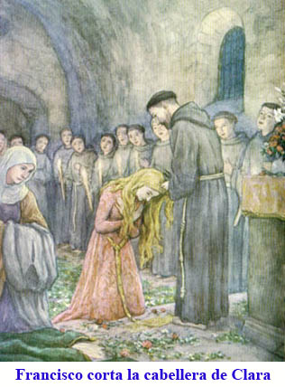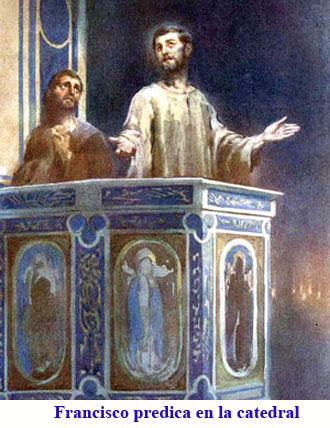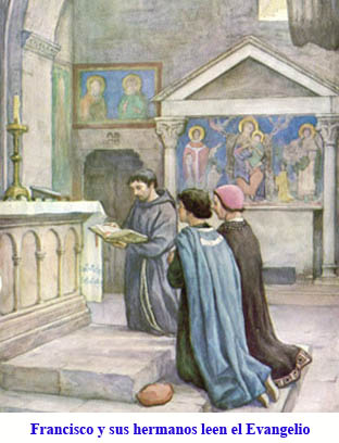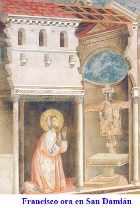Comprendemos ahora, en su contexto histórico, la afirmación inicial del Testamento. Fue el Señor quien «le llevó entre los leprosos» para convertirle. Descubierto el Cristo en el pobre, ya se halla preparado para descubrirlo como «Hermano» en la imagen del crucifijo de San Damián, cuya visión es referida seguidamente en todas las fuentes biográficas. Para entonces se hallaba «cambiado por completo en el corazón», dice Tomás de Celano (2 Cel 10). Sigue después la ruptura con su padre Pedro Bernardone y el desenlace aparatoso ante el obispo, cuando el convertido, desnudo, liberado de todo lazo y de todo convencionalismo, se lanza al riesgo de la nueva vida, confiándose únicamente al Padre del cielo (1 Cel 8-15; TC 13). Celano le describe ebrio de gozo por la libertad nueva que ahora gustaba su espíritu, pregonando su dicha en provenzal, bosque adelante. Va a pedir trabajo a una abadía, y allí tiene que probar desnudez y hambre. En Gubbio un amigo le proporciona el vestido indispensable. Por fin, «se trasladó a los leprosos y vivió con ellos, sirviéndoles con toda diligencia por Dios; lavábales las llagas pútridas y se las curaba» (1 Cel 17). Fue su noviciado. Y sería también el noviciado de sus primeros seguidores. Persuadido de que el Cristo acaba por revelarse siempre a quien le busca en el necesitado, les ofrecerá como un regalo esa experiencia tan rica para él en dulces resultados (1 Cel 39; EP 44). La fe de Francisco siguió vivificada toda la vida por el primer descubrimiento de ese «sacramento» de la presencia de Cristo en el pobre: «Cuanto hallaba de deficiencia o de penuria en cualquiera que fuese, lo refería a Cristo con rapidez y espontaneidad, hasta el punto de leer en cada pobre al Hijo de la Señora pobre... Cuando ves un pobre -decía a sus hermanos- tienes delante un espejo donde ver al Señor y su Madre pobre. Y asimismo en los enfermos debes considerar las enfermedades que Él tomó por nosotros» (1 Cel 83 y 85). Por lo demás, la trayectoria seguida por la gracia en la conversión de Francisco no es una excepción, sino estilo muy normal en la economía de la salvación (cf. Is 58,1-12). Ir al hermano, al hermano indigente sobre todo, es ir a Dios. Cristo nos espera siempre en la persona de cualquiera que necesita de nosotros (Mt 25,31.46). 3) Francisco descubre el Evangelio como proyecto de «vida» Fueron, más o menos, dos años y medio, de grande sufrimiento interior, como no podía menos de ser en aquel viraje total de la vida: «Sufría en lo íntimo grandes padecimientos y perplejidad, ya que no lograba descansar mientras no viera realizado el impulso que experimentaba. Cruzaban por su mente, con impertinencia, los pensamientos más encontrados. Ardía en su interior el fuego divino, un ardor que no podía ocultar exteriormente. Se dolía de haber pecado tan gravemente. Ya no le deleitaban los males pasados ni los presentes, pero no había recibido todavía la seguridad de preservarse de los futuros» (TC 12). Es la típica situación del convertido, que ve con claridad lo que ya ha terminado para él, lo que Dios no acepta en su vida, pero aún no ha descubierto «el camino»: se siente impulsado hacia lo desconocido, abandonado a la acción divina. Ese confiarse exclusivamente a la guía de Dios lo afirma él mismo en el Testamento, refiriéndose a los primeros pasos de la fraternidad: «Después que el Señor me dio hermanos, nadie me mostraba lo que debía hacer, sino que el mismo Altísimo me reveló que debía vivir según la forma del santo Evangelio» (Test 14). Un anticipo de este descubrimiento definitivo lo tuvo aquel día en que se dispuso a ejecutar, con prontitud caballeresca, la orden recibida del Crucificado de reparar la iglesita de San Damián. Fuese a casa, tomó consigo las mejores telas del almacén de su padre, cargó el caballo y, en Foligno, vendió telas y caballo. Vuelto a Asís, fue a encontrar al capellán de San Damián para darle el encargo de reconstruir la iglesia. Razonaba todavía como buen rico cristiano. Pero el sacerdote rehusó recibir aquel dinero. Semejante negativa fue interpretada por el joven convertido como un rechazo, por parte del Señor, de sus recursos humanos: aceptaba sólo su persona, no sus bienes. Arrojó la bolsa en una ventana, despreciando el dinero como si fuera polvo. «Hubiera querido emplearlo todo en socorrer a los pobres y en restaurar la capilla» (1 Cel 14); pero ahora tenía que llegar a la conclusión de que, para ser verdadero hermano de los pobres, había que hacerse pobre como ellos y de que las obras de Dios no se hacen con dinero, sino con la donación personal. Después de la renuncia total en manos de su padre y de su primera y dura experiencia de la pobreza alegre, regresó a Asís, dispuesto a poner por obra el mandato del Señor crucificado, pero con sus propias manos. Hubo de aprender el oficio de albañil, mendigar el material piedra a piedra y pedir la colaboración de otros pobres, compartiendo con ellos las limosnas. Así, sin dinero, logró reconstruir no sólo una iglesia, sino luego una segunda y después una tercera, y hubiera continuado reconstruyendo iglesias, si una nueva manifestación del designio divino no le hubiera hecho ver que aquel servicio prestado al Cristo pobre no era sino un adiestramiento simbólico para su grande misión en la santa madre Iglesia. En adelante el dinero no contará absolutamente en su vida; lo excluirá decididamente más tarde, en la Regla, de los medios de presencia y de acción de su fraternidad. Esta postura le fue confirmada en forma definitiva el día en que, asistiendo a la misa en la iglesita de la Porciúncula, la tercera reconstruida por él, se sintió interpelado por la página evangélica de la misión. Era probablemente en la fiesta del evangelista san Marcos, 25 de abril, o en la de san Lucas, 18 de octubre del año 1208.[3] El texto escuchado debió de ser el de Lc 10,1-9: Jesús manda a sus dis