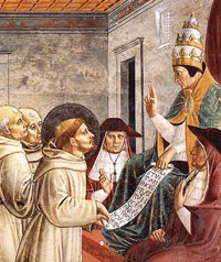 Las celebraciones del octavo Centenario de la Fundación de la Orden de los Hermanos Menores se iniciaron con una invitación urgente a la refundación, es decir, con una llamada a volver a lo esencial, a los fundamentos de nuestro carisma; a volver a las raíces de nuestra espiritualidad; y, al mismo tiempo, a reconocer, leer e interpretar, a la luz del Evangelio, los signos de los tiempos: «ráfagas de luz presentes en la noche oscura de nuestras vidas y de nuestros pueblos, faros generadores de esperanza» (El Señor os dé la paz [=Sdp], 6), «voces que el Espíritu nos lanza y que piden respuesta» (Portadores del don del Evangelio [=PdE], 14). Entonces resonó fuerte en nuestros corazones la llamada apremiante a «nacer de nuevo» (Jn 3,3), a «no domesticar las palabras proféticas del Evangelio para adaptarlas a un estilo de vida cómodo» (Sdp 2), pues sólo así podremos «nutrir desde dentro, con la fuerza liberadora del Evangelio, nuestro mundo fragmentado, desigual y hambriento de sentido, tal como hicieron en su tiempo Francisco y Clara de Asís» (Sdp 2), siendo nosotros mismos «signos de vida legibles para un mundo sediento de un cielo nuevo y una tierra nueva (Is 65,17; Ap 21,1)» (Sdp 7). Esa misma llamada a la conversión sigue acompañándonos hoy en nuestro camino, como exigencia para dar a luz una nueva época, y despertar una nueva visión de la vida, cimentadas en la justicia, el amor y la paz (cf. Sdp 2). Y volviendo a lo esencial, a nuestras raíces y fundamentos, nos hemos encontrado con el Evangelio. No podía ser de otra forma, ya que nuestra Fraternidad está enraizada, tiene su origen, en la escucha del Evangelio, y, por tanto, en Cristo que nos habla a través de él (cf. PdE, 6). Haciendo memoria agradecida de nuestro pasado hemos tomado mayor conciencia que para gustar la gracia de los orígenes, vivir el presente con pasión, y abrazar el futuro con esperanza (cf. Novo Millemnio Ineunte, 1), objetivos últimos de las celebraciones jubilares, era necesario volver al Evangelio, poner a Cristo en el centro de nuestras vidas, pues sólo así nuestra vida podrá recuperar la belleza, la poesía y el entusiasmo de los orígenes. Y hemos intuido también el camino que, además de llevarnos a lo esencial de nuestra experiencia de fe y de nuestra espiritualidad, nos llevase también a responder a las exigencias más profundas de nuestra sociedad. Este camino lo hemos señalado con tres palabras: centrarse, concentrarse y descentrarse. Centrarse en aquel que para nosotros lo ha de ser todo: el bien, todo bien, sumo bien, como lo fue para Francisco (cf. AlD 4). De ahí la razón por la cual «tener el corazón constantemente vuelto hacia el Señor» (1 R 22,19) se nos presentaba, y sigue presentándosenos, como la prioridad de las prioridades; y abandonar todo impedimento y dejar de lado toda preocupación para poder servir, amar y honrar al Señor Dios, con corazón y mente puros (cf. 1 R 22,26) aparecía y aparece ante nosotros como el gran reto en este momento en que el activismo, también el apostólico, a menudo se presenta como una huida hacia delante, que intenta, inútilmente, llenar un vacío de Dios en la propia existencia. Concentrarse en los elementos esenciales de nuestro carisma, con la finalidad de evitar la fragmentación y la dispersión, que tantas veces nos afecta. Y estos elementos esenciales los hemos individuado en las llamadas Prioridades que nos acompañan desde el Capítulo de 1997 como «llave de lectura para vivir nuestra identidad y para comprender las aspiraciones del mundo» (Sdp 4), y que, por voluntad del Capítulo de Pentecostés 2009, nos seguirán acompañando en este sexenio (cf. Mandato capitular 1). Estas Prioridades -espíritu de oración y devoción, vida fraterna en comunidad, minoridad, pobreza y solidaridad, evangelización y formación- no son valores opcionales, sino valores que nos identifican como Hermanos Menores, pilastras de nuestra fidelidad al Evangelio, consecuencia de una vida radicalmente evangélica, tal y como la vivió Francisco y nos la propuso en su propósito de vida. Descentrarse para ir al mundo, nuestro claustro, y allí, inter gentes, proclamar que sólo Él es omnipotente (cf. CtaO 9). Hoy, más que nunca, somos conscientes que no hemos sido llamados para nosotros mismos, sino para los demás, y que nuestras fraternidades no son para ellas mismas, sino para hacer conocer el Reino de Dios. Somos y queremos seguir siendo los frailes del pueblo y para ello hemos de salir por los caminos del mundo siendo, portadores del don del Evangelio. DE CARA AL FUTURO
