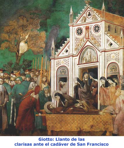 Empero, si Clara, en presencia de Francisco, manifestaba la debilidad propia de la mujer, que necesita consuelo y aliento, ante sus hijas era la madre revestida de fortaleza para defenderlas y protegerlas. La sangre de los antiguos guerreros que corría por sus venas quizá influía no poco en el temperamento de Clara. De esta invencible fortaleza dio pruebas las dos veces que San Damián fue sitiado por el ejército de Federico II. Como este malicioso y astuto príncipe mantuviese guerra con el Papa, lanzó a los Estados de la Iglesia sus arqueros mahometanos, sobre los cuales no tenían ningún poder las excomuniones del Papa. Desde la cima de la fortaleza de Nocera, a corta distancia de Asís, aquellos sarracenos cayeron sobre el valle de Espoleto como «un enjambre de abejas» y fueron a embestir contra el convento de San Damián. La entrada de los musulmanes en el monasterio significaba para las Hermanas no sólo la muerte, sino también la más vergonzosa de las ignominias. Afligidas en extremo se acogieron en torno de Clara, quien en aquellos momentos se hallaba (lo que ocurría con frecuencia en sus últimos años) en cama postrada por gravísima enfermedad. Mas ella, sin perder un momento la calma y el valor, se hizo trasladar a la puerta del convento, ofreciéndose la primera al peligro; mandó que le trajesen la cápsula de plata, encerrada en una caja de marfil, donde se reservaba el Santísimo, y cayó de rodillas delante de él, pidiendo amparo al cielo para sí y sus hijas. De repente oye que desde dentro del sagrado vaso sale una voz «como de niño» que le dice: «Yo os guardaré siempre», y en seguida, llena de fe y confianza, se alzó de la oración. El evento confirmó en el acto la promesa divina, porque en el mimo instante los sarracenos levantaron el sitio del monasterio y se fueron a otra parte a continuar su vandálica obra (LCl 21-22). En recuerdo de este suceso, acaecido en 1230, se representa con frecuencia a Clara con una custodia en la mano. Más tarde la leyenda exornó considerablemente el primitivo relato, según se ve aún hoy día en un fresco medio borrado que se venera en San Damián y que representa a Clara con el Santísimo avanzando resuelta al encuentro de los sarracenos, y a estos bajando precipitadamente las escalas y huyendo despavoridos. Cuatro años más tarde (junio de 1234), un milagro parecido impidió que las tropas de Federico, capitaneadas por Vital de Aversa, se apoderasen, no ya sólo de San Damián, sino de toda Asís, acontecimiento cuyo aniversario han celebrado siempre los asisienses como fiesta nacional. También en otra circunstancia demostró Clara su ánimo resuelto y varonil. Cuando en 1220 llegó a Italia, procedente de Marruecos, la noticia de la muerte de los cinco primeros mártires franciscanos, la Santa quedó tan impresionada que resolvió ir ella también entre los infieles y recibir allí con sus hermanas la palma del martirio; y fue necesaria la prohibición expresa de Francisco para impedirle que llevara a cabo ese proyecto. Pero en lo que se manifestó más enérgica e inflexible fue en la lucha que sostuvo durante años, incluso con el Papa mismo, para poder permanecer fiel a su voto de pobreza. Constantemente, su devoto amigo Hugolino, que llegó a ser papa en 1227 con el nombre de Gregorio IX, animado ciertamente de los mejores propósitos, se esforzaba en convencerla de que debía aceptar, para sí y su convento, algunos bienes temporales que les permitiesen vivir en calma y en paz, como lo hacían las religiosas de otras órdenes. Pero ella se opuso obstinadamente a todos esos esfuerzos. Por fin, cuando Gregorio IX llegó a decirle: «Si temes por el voto, Nos te desligamos del voto», ella replicó con santa intrepidez: «Santísimo padre, absolvedme de mis pecados, pero no de la obligación de seguir a nuestro Señor Jesucristo» (LCl 14). Sólo dos días antes de morir tuvo Clara la gran alegría de obtener de Inocencio IV y a perpetuidad, para sí misma y para sus hermanas, el derecho de ser y permanecer siempre pobre.3 Al revés de Francisco, y a pesar del extremado rigor de su vida, Clara estaba destinada a vivir larga vida: murió a los sesenta años, después de cuarenta y dos de vida monacal, la mayoría de los cuales estuvo afligida por el triste recuerdo, siempre fresco en su memoria, de la muerte de su seráfico maestro, acaecida en 1226. Cuando Francisco estaba ya para morir, tendido en su lecho, en su pobre celda de la Porciúncula, adonde acababa de hacerse trasladar presintiendo su fin, envió Clara un mensajero a decirle que deseaba mucho verle, ya que iba a ser la última vez, al cual contestó Francisco: «Ve a decirle a la hermana Clara que, por el momento, no es posible que ella venga acá; pero que se alegre, porque ni ella ni sus hijas morirán antes de haberme visto otra vez, y que tal vista las consolará en gran manera». Pocos días después voló al cielo Francisco, y los habitantes de Asís bajaron a la Porciúncula para llevarse el sagrado cadáver, lo que hicieron en compañía de los frailes, en solemne procesión, en medio de himnos y cánticos de alabanza, con palmas y antorchas encendidas y al son de trompetas. Era una de esas mañanas en que el sol de octubre dibuja una neblina en el valle de Umbría con colores de violeta que se extienden por todo él como un mar sosegado y sin orillas. El devoto cortejo no tardó mucho en llegar al monasterio de San Damián, a cuyo frente se paró. Los portadores de la preciosa carga penetraron con ella en la iglesia, la colocaron junto a la reja de las hermanas y éstas pudieron así contemplar por última vez el rostro ya inanimado de su padre y maestro. Dice el Espejo de Perfección: «Removida la reja de hierro por donde las monjas solían comulgar y escuchar la palabra de Dios, los hermanos levantaron del ataúd el santo cuerpo y lo sostuvieron en sus brazos ante la ventanilla por buen espacio de tiempo, mientras la señora Clara y