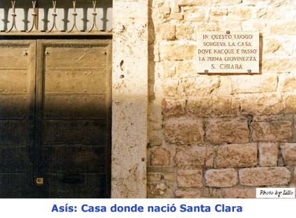 . | Capítulo V SANTA CLARA DE ASÍS Mientras que los hombres, con demasiada frecuencia, se contentan con un ideal del todo teórico, bien se puede afirmar que la práctica, incluso despojada con frecuencia de toda teoría, es el dominio propio de la mujer; y nadie realiza más plenamente el ideal concebido por un hombre, que la mujer cuyo corazón se ha conquistado ese hombre. Lejos de mí afirmar que Francisco de Asís no haya puesto en práctica el Evangelio que él predicaba. Cabalmente la originalidad de su genio consiste en haber seguido de cerca al Maestro divino. Pero si buscamos la vida franciscana en su especial y característica perfección, despojada de agregados extraños, buenos o malos, en nadie encontraremos una imagen más perfecta de ella que en la ilustre discípula e hija espiritual de Francisco, Santa Clara de Asís. Justamente, Clara se preciaba de llamarse «plantita del bienaventurado padre Francisco» (RCl 1). Ella, en efecto, fue y es aún la flor del jardín franciscano, flor cuyo perfume, de exquisita fragancia y pureza, sigue manando del huertecillo donde fue plantada. Clara nació en Asís en 1194, probablemente el 11 de julio. Su padre se llamaba Favarone de Scifi, y Ortolana, su madre, era descendiente de una ilustre familia de Sterpeto, los Fiumi. Ambos eran igualmente nobles, y en especial los Scifi pertenecían a la más encopetada aristocracia de Asís. Favarone tenía el título de Conde de Sasso-Rosso, nombre de una montaña roqueña que se levanta sobre la ciudad de Asís. Aún se ve en el día de hoy el palacio fortificado que le servía de mansión en Asís, muy cerca de Puerta-Vieja y no lejos de la iglesia de Santa Clara.1 Cinco hijos le nacieron de Ortolana: un hombre, Boson, y cuatro mujeres, Renenda, Clara, Inés y Beatriz. Era Ortolana mujer de mucha virtud y piedad, como lo manifestó llevando a cabo varias peregrinaciones, que en aquel entonces eran muy peligrosas, señaladamente a Bari y a Tierra Santa. Se cuenta que, poco antes de nacer Clara, el Señor le prometió en la oración que la hija que iba a alumbrar sería una brillante luz que alumbraría al mundo entero, y es fama que por esto la niña recibió en el bautismo el nombre de Clara, el cual significa a la vez luminosa y famosa. Creció la niña en su casa de Asís en medio de aquel orden y bienestar que tan benéfico influjo suele tener en la formación de una piedad sólida. Desde su más corta edad sobresalió Clara en virtud entre niñas de su clase. Sin duda desde entonces conocería las leyendas de los Padres del Desierto, las que, antes de aparecer la Leyenda Dorada, eran la lectura predilecta de aquellos tiempos. Como quiera que fuese, se cuenta que de muy niña se mortificaba duramente usando a raíz de su delicado cuerpo ásperos cilicios de cerdas, y que (como se refiere del ermitaño Pablo de Fermo en la Historia Lausiaca), rezaba todos los días tan gran número de oraciones, que tenía que valerse de muchas piedrecillas para contarlas. Dicho se está que, a imitación de todas las personas piadosas de la Edad Media, juntaba Clara la práctica de la caridad a las mortificaciones. Así pasaron los primeros años de Clara hasta la edad en que fue una gallarda y hermosa joven. Tuvo muchos pretendientes de su mano; pero uno entre todos fue del agrado de sus padres. Hablaron de esto a su hija; más con no poca sorpresa encontraron en ella una tenaz resistencia: ni siquiera oír hablar de matrimonio quería, y como su madre la importunaba preguntándole el porqué, ella le contestó que se había consagrado a Dios y había resuelto no conocer jamás a hombre alguno. Este nivel de virtud era incomprensible para Favarone y Ortolana. En aquellos tiempos, como en los presentes, el cristianismo mediocre tenía viva preocupación en contra de todo lo que llamaban «exceso de celo». Muchas veces en el curso de la historia de aquella época se nos ofrecen dolorosas luchas entre padres e hijos o hijas, cuando éstos, movidos del temor de Dios, querían salirse del camino trillado. Tal aconteció a la joven Clara Scifi a la edad de dieciséis años. Dios empero no la dejó sola en el combate. Casi por este mismo tiempo había vuelto de Roma, con autoridad pontificia para predicar, el joven Francisco, cuya conversión tan hondamente había conmovido a la ciudad entera; de modo que muy fácilmente pudo oírle Clara, como en efecto le oyó predicar en la iglesia de San Rufino, sita muy cerca del palacio de los Scifi, y en la de San Jorge. Desde el primer momento que le vio, Clara comprendió que la forma de vida observada por el Santo era la que a ella le señalaba el Señor. Entre los discípulos de Francisco había dos, Rufino y Silvestre, que eran parientes cercanos de Clara, y éstos facilitaron el camino a sus piadosos deseos. Cierto día, acompañada de una de sus parientas, a quien la tradición le da el nombre de Bona de Guelfuccio, fue a ver a Francisco. Este había ya oído hablar de ella y desde que la vio tomó la resolución, como nos dice la leyenda, de «quitar al malvado mundo tan precioso botín para enriquecer con él a su divino Maestro». Le aconsejó, pues, que, despreciando los vanos y caducos bienes del mundo, resistiese a las instancias que sus padres le hacían para casarla, que guardase su cuerpo como un templo para sólo Dios y no tuviese otro esposo que Jesucristo. Desde entonces Francisco fue el guía espiritual de Clara, la cual, bajo la dirección de tan calificado maestro, se sentía cada día más fuertemente inclinada a dar el paso decisivo, sin consideración alguna a todo lo que fuera ajeno a su deber para con Dios. Porque ella comprendía que este deber se oponía a que ella siguiera los deseos de sus padres, los cuales sólo pensaban en darle un marido terreno. En esta disposición se encontraba su alma en la Cuaresma de 1212. Predicaba Francisco, y entre sus oyentes estaba Clara. Tan «maravillosamente habló el predicador del menosprecio del mu