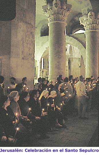 MONICIÓN PARA EL CÁNTICO El libro de Tobías pone nuestro cántico en labios del anciano patriarca Tobit, tan probado por Dios. Al ver Tobit que el Señor le ha devuelto la vista, después de los largos años de ceguera, siente crecer su esperanza. Como la ceguera ha conocido el fin, también tendrá fin el destierro de Babilonia, y Jerusalén, la ciudad amada, recobrará su antiguo esplendor, hasta tal punto que vendrán de lejos muchos pueblos, con ofrendas para el Rey del cielo. A nosotros, cristianos, que vivimos ciegos, por nuestra ignorancia, y sumergidos en las dificultades del destierro, este cántico nos ha de abrir a la esperanza. Experimentamos la propia limitación -ceguera de nuestro espíritu- y las pruebas del destierro; con frecuencia, Dios nos ha castigado por nuestras obras, pero también hemos probado, incluso ya ahora durante nuestro destierro, el amor a Cristo, nuestro esposo, quien, con su palabra evangélica, ilumina nuestras tinieblas, como fueron iluminados los ojos de Tobit. Esta palabra nos hace esperar, para el futuro, el consuelo de la Jerusalén definitiva, donde nos alegraremos con el pueblo justo reunido en ella. Para la celebración comunitaria, es recomendable que este cántico sea, en algunas ocasiones, proclamado por un salmista; si no es posible cantar la antífona propia, la asamblea puede acompañar el cántico cantando alguna antífona que celebre la gloria de la Jerusalén futura, por ejemplo: «Hija de Sión, alégrate» (MD 606) o bien «Dad gracias al Señor con cantos de alegría» (MD 761). Oración I: Haz Señor que, llenos de fe, vivamos en continua espera del bienaventurado día en que se manifestará la gloria del gran Dios y Salvador nuestro, Cristo Jesús; que, cuando él venga a ser glorificado con sus santos, podamos alegrarnos y saltar de gozo contemplando la nueva Jerusalén, reedificada con zafiros y esmeraldas, y, congregados en ella, te podamos bendecir, por los siglos de los siglos. Amén. Oración II: Tú, Señor, has hecho de tu Iglesia la ciudad situada en lo alto del monte, para que, como signo de tu amor a los hombres, aportara a los pueblos la libertad, la alegría y la paz; haz que tu pueblo realice la misión que le ha sido confiada y congregue todas las naciones en la confesión de tu nombre. Te lo pedimos por Jesucristo nuestro Señor. Amén. [Pedro Farnés] MONICIONES PARA EL REZO CRISTIANO DEL CÁNTICO Introducción general Sin una introducción narrativa, la oración de Tobit emprende rumbos nuevos, influidos por el Segundo y el Tercer Isaías. Durante las guerras de los Diadocos o en la época de los Macabeos, Jerusalén debió sufrir gravemente. Tal pudo ser el ambiente en el que se compuso esta oración del libro de Tobías. La oración persiste en un motivo: la perpetuidad referida al Señor, a la alegría y a la alabanza. Es un dilatado horizonte temporal en el que cabe un amplio marco espacial: todas las generaciones se darán cita en la gran Jerusalén. De este modo, Jerusalén será el centro del tiempo y del espacio, por ser la elegida, la morada del Rey de los siglos. El cántico tiene tres partes: un invitatorio (vv. 10-12), una descripción que presenta a las gentes encaminándose hacia Jerusalén, y a ésta saliendo a su encuentro (vv. 13-16b), y un canto festivo por la reconstrucción de la ciudad (vv. 16c-18). Asumimos como índice divisorio las tres anotaciones de perpetuidad. El invitatorio y la descripción pueden ser salmodiadas por uno solo; la asamblea se suma al canto festivo final: Presidente, Invitatorio: «Que todos alaben al Señor... por los siglos de los siglos» (vv 10-12). Salmista, Descripción: «Una luz esplendente... durará para siempre» (v. 13). Asamblea, Canto festivo: «Saldrás entonces con júbilo... y allí, su templo para siempre» (vv. 15-17). Los justos poseerán la tierra Aunque el pueblo sea justo porque observa la ley y alaba a Dios en su templo, la cita implícita del Tercer Isaías nos remite a un horizonte escatológico: «En tu pueblo todos serán justos y poseerán por siempre la tierra» (Is 60,21). Así se cumplirá la promesa hecha al Patriarca y actualizada en Babilonia: la tierra de tu peregrinación será tu posesión perpetua. Esto supone que el pueblo ha de ser arrancado de este mundo injusto y, tras la posterior travesía del mar, llegar a la tierra firme (Jn 6,21). Jesús, el justo, ya ha pasado el mar. Ha llegado a la tierra, en la que permanece, donde prepara la comida de la dicha, mientras los suyos faenan aún en el agua (Jn 21,6-8). Estos han sido liberados ya de la opresión y de la muerte. Se les ha comunicado el Espíritu para que, permaneciendo fieles, lleguen a la dicha de los justos que poseen la tierra. Así se alegrarán los desterrados y los desgraciados gozarán por los siglos de los siglos. Un hombre nuevo El nombre circunscribe la realidad, la define. Si la función de una persona experimenta una mutación, lógico es que cambie de nombre. No es que aquí se cambie el nombre de Jerusalén; se le confirma. En otro tiempo fue «Olvidada» y «Abandonada»; en el futuro le llamarán «Buscada», «Ciudad no abandonada» (Is 62,12). Las gentes se citan en la Elegida, porque de aquí saldrá una luz que iluminará a toda la tierra. Es la luz de las gentes, que alumbra desde su salida. Cuando llegue al cenit de su esplendor convocará en Ciudad-Elegida a los pueblos de toda la tierra. Más, ella motivará que los seguidores de esta luz reciban el nombre de «cristianos». Es el fragante nombre del Elegido grabado en los habitantes de la nueva Jerusalén. Si llevamos con garbo el nuevo nombre, sabremos su significado cuando el Vencedor nos defienda ante el Padre. Cantemos vítores porque nuestro nombre dura para siempre. Reconstrucción de la ciudad Jerusalén será construida; el templo, cimentado. Los que la construyen van más aprisa que los que la destruyen. Destrucción y construcción que valen para el momento presente, con la diferenci