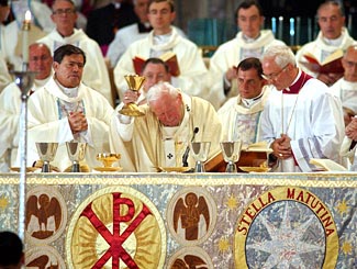 Además, hay que tener en cuenta que, en el Occidente que pertenece al patriarcado romano, llegaron a existir algunos ritos diferentes del romano. Algunos, con el tiempo, dejaron de tener vigencia como consecuencia de los avatares históricos: tal es el caso del rito afro-latino y del galicano. Pero otros han conseguido llegar hasta nuestros días, aunque su ámbito de uso sea muy reducido: son el rito ambrosiano de Milán y el hispano-mozárabe, el rito de la Iglesia visigoda que se utiliza en algunas iglesias de Toledo y, excepcionalmente, en otros lugares de España. «La santa Madre Iglesia concede igual derecho y honor a todos los ritos legítimamente reconocidos y quiere que en el futuro se conserven y fomenten» (Vaticano II, Sacrosanctum Concilium, 4). Los cristianos de España, desde el siglo IX en que dejó de utilizarse el rito hispánico, celebramos la Eucaristía según el rito romano o latino. Por eso el misal que utilizamos se llama «Misal Romano». b) Estructura de la celebración Resulta sorprendente que, a pesar de la gran diversidad de ritos, la estructura fundamental de la celebración eucarística sea en todos la misma y, además, muy sencilla y lógica. Y es que los cristianos siempre hemos querido ser fieles al recuerdo de lo que hizo el Señor Jesús la noche antes de morir: 1.º Se reunió con sus discípulos. 2.º Tuvo con ellos una conversación importante. Los evangelistas Lucas, y sobre todo Juan, nos lo atestiguan. 3.º Celebró con ellos la cena pascual en la que instituyó la Eucaristía. 4.º Se dirigieron después a los escenarios donde tuvo lugar la pasión y la muerte de Jesús, es decir, el acontecimiento que constituye el verdadero contenido de la Eucaristía. Aún podíamos simplificarlo más: aquella noche Jesús nos habló y se nos dio. Con ello siguió y llevó a plenitud las dos operaciones que ha hecho Dios desde que comenzó a revelársenos a los hombres: nos ha hablado y ha actuado a favor nuestro. El amor de Dios siempre se nos ha manifestado en palabras y en obras. Porque así es como amamos los hombres; Dios, para que lo entendiéramos, ha querido adaptarse a nuestra manera de ser y de obrar. De ahí que la celebración eucarística tenga una configuración tan parecida a la de cualquier comida nuestra con amigos. Cuando Jesús, ya Resucitado, se vuelva a encontrar con sus discípulos, en la escena de Emaús (cf. Lc 24,13-35), la estructura del encuentro será muy similar: se pone a caminar con ellos, entabla con ellos una conversación, y después se sienta a la mesa con ellos para partir el pan. Lo único que cambia es el final: ya no se dirigen a la pasión, sino a ser testigos de la resurrección. Y cuando, unos veinticinco años después, Pablo celebre la Eucaristía con la comunidad de Tróade, volveremos a encontrarnos con los mismos elementos: «El primer día después del sábado nos reunimos para la fracción del pan. Pablo, que tenía que irse al día siguiente, les estuvo hablando y prolongó el discurso hasta media noche..., después partió el pan y, una vez que hubo comido, continuó conversando largo rato hasta que se hizo de día. Después se marchó» (Hch 20,7-11). Desde el principio, pues, tenemos atestiguadas las dos partes fundamentales de la celebración eucarística, la conversación y la comida. Y estas dos partes están encuadradas entre dos momentos lógicos, la reunión y la despedida. Pero, ¿cómo se desarrollan estas dos partes principales? Los mismos textos de los Evangelios nos dan algunas pistas. En cuanto a la conversación, en la escena de Emaús se nos dice que Jesús «empezando por Moisés y siguiendo por los profetas, les explicó lo que decían de él las Escrituras» (Lc 20,27). Es decir, Jesús explica su obra a la luz de los textos del Antiguo Testamento. Y, en cuanto a la comida, todos los textos institucionales coinciden, casi machaconamente, en referirnos cuatro acciones de Jesús: «tomó el pan, dio gracias, lo partió y se lo dio». Tenemos así configurado el núcleo fundamental de la celebración de la Eucaristía, que se repetirá invariablemente a través de los siglos. Para comprobarlo, podemos aducir el testimonio más antiguo que tenemos después de los escritos del Nuevo Testamento. Hacia la mitad del siglo II, el filósofo cristiano san Justino envía al emperador Antonino Pío su Apología en defensa de los cristianos. En esta obra describe así la celebración eucarística (Apología 1, 65 y 67): «El día que se llama del sol tiene lugar la reunión en un mismo sitio de todos los que habitan en la ciudad o en el campo. »Se leen las memorias de los apóstoles y los escritos de los profetas, tanto tiempo como es posible. Cuando el lector ha terminado, el que preside toma la palabra para incitar y exhortar a la imitación de tan bellas cosas. Seguidamente nos levantamos todos a una y elevamos nuestras preces. Cuando termina esta oración nos besamos unos a otros. »Luego se lleva al que preside... pan y una copa de agua y vino mezclados. »El presidente los toma y eleva alabanza y gloria al Padre del universo, por el nombre del Hijo y del Espíritu Santo y da gracias largamente porque hayamos sido juzgados dignos de estos dones. Cuando terminan las oraciones y las acciones de gracias todo el pueblo presente pronuncia una aclamación diciendo: Amén. »Cuando el que preside ha hecho la acción de gracias y el pueblo le ha respondido, los que entre nosotros se llaman diáconos distribuyen a todos los que están presentes pan, vino y agua "eucaristizados" y los llevan a los ausentes». ¡Dieciocho siglos después!, el relato de san Justino coincide fundamentalmente con la estructura de nuestra celebración actual, que tiene las siguientes partes: 1.ª La comunidad se reúne: los Ritos iniciales intentan constituir la asamblea, concienciándola, ya desde el primer momento, de ser una comunidad celebrante y preparándola para toda la celebración. 2.ª La comunidad celebra la palabra 