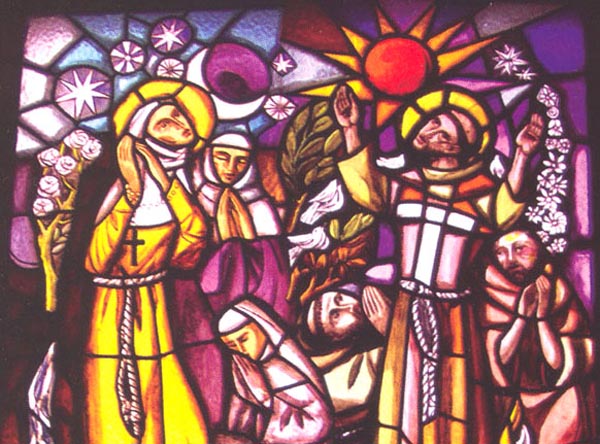 De tarde en tarde, le vencía el deseo de ir a San Damián; llamaba a un compañero y le decía: «¡Vamos a ver a hermana Clara!».[9] Más duro todavía resultaba a Clara y a sus hijas carecer de la vista y de las palabras del Padre. Pero también ellas hubieron de recibir su lección ascética de un simbolismo crudo. Reunidas todas ante el locutorio, Francisco se puso en oración con los ojos alzados al cielo. Luego mandó traer ceniza; hizo con ella un círculo en derredor y la echó también sobre su cabeza. Estuvo así buen rato en silencio. Por fin se levantó y, por toda plática, entonó el Miserere.[10] No hay que exagerar, con todo, ese alejamiento calculado. Por otros episodios y por las declaraciones del proceso de canonización de santa Clara, sabemos que la presencia de los hermanos en San Damián era casi continua y en un ambiente de espontaneidad. Francisco veía el misterio del desposorio espiritual con Cristo en toda alma fiel. Es una unión que alcanza toda la fecundidad salvífica de nuestra comunicación de vida con el Redentor glorioso. Quien se consagra a Cristo en virginidad contribuye eficazmente a la fecundidad maternal de la Iglesia. Un anhelo general de vida más pura fue el efecto inmediato que se siguió a la irradiación de la vida apostólica de la fraternidad (1 Cel 37). Jacobo de Vitry, testigo inmediato, afirma que los hermanos menores «purificaban el ambiente del hedor de los vicios y encendían a muchos en el deseo de la castidad».[11] Francisco sabía elevar a ese clima de limpieza integral también a los unidos en matrimonio, devolviendo al amor humano su dignidad, sin menoscabo de los bienes de la unión conyugal (cf. LP 69). Se comprende que los focos de más intensa irradiación fueran los reclusorios de las damas pobres. La virginidad no era allí solamente una disposición para la entrega sin reserva al Esposo divino, sino además una invitación muda a la elevación de la vida cristiana. A todas servía de ejemplo santa Clara, «virgen en la carne y purísima en el corazón» (1 Cel 18), que «a manera de flor blanca y primaveral -en expresión de san Buenaventura- esparcía por todas partes el olor suavísimo de su pureza» (LM 4,6). Celano, describiendo el clima de santidad que se respiraba en San Damián cuando él redactaba su primera biografía, dice: