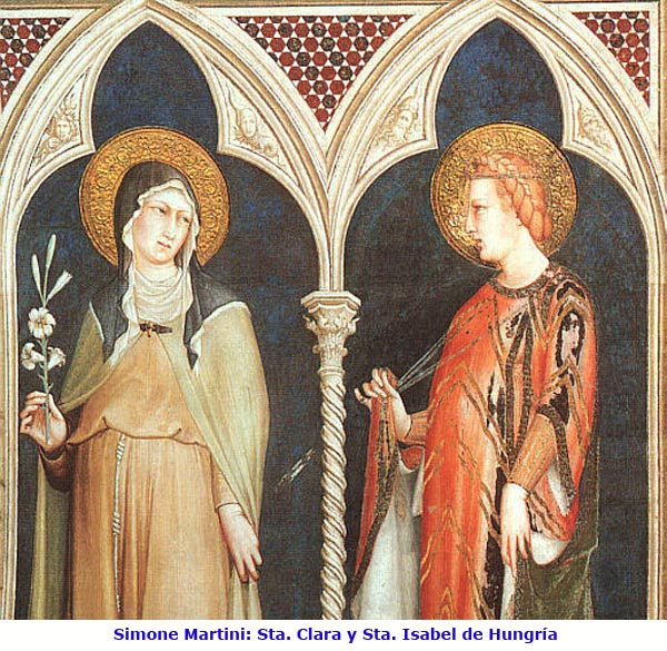 Clara concebía la donación a Cristo como un compromiso dinámico y exigente. El Esposo es el Crucificado pobre, que nos ha amado a costa de sí mismo y busca en sus amantes colaboración incondicional.[12] Mujer plenamente realizada, dotada de una afectividad y sensibilidad exquisitamente femeninas, Clara amaba sobre todo a las hermanas que compartían su mismo empeño evangélico; ellas, en el proceso de canonización de la santa, han dejado testimonios preciosos sobre aquella su manera de querer, con ternura, pero sin maternalismos envolventes. Amaba a su madre Ortolana y la recibió gustosamente a su lado en el monasterio; amaba a su hermana Inés, cuya carta, escrita desde Monticelli (Florencia) luego de llegar a este monasterio, constituye uno de los documentos más extraordinarios de la intensidad de un afecto.[13] Y amaba, si bien a distancia y sin conocerla, a su hija espiritual Inés de Praga, como aparece elocuentemente en las cartas escritas a ella, especialmente en la última de despedida: