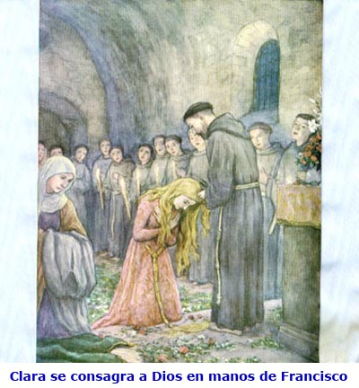 Contrariamente a lo que muchos opinan, la normativa del c. 13 del concilio IV Lateranense de 1215 no ha de ser considerada como un impedimento sino como una medida legal favorable al afianzamiento y progreso de las órdenes mendicantes. De hecho, las grandes órdenes mendicantes resultaron favorecidas, mientras que dicha normativa obstaculizó la proliferación de pequeñas fundaciones tradicionalmente tendentes por otra parte a escapar al control de la Iglesia. Que este abuso no se cortó de la noche a la mañana, aparece claro por el concilio II de Lyon (1274) c. 23, que ordena la supresión de todas las religiones aparecidas desde 1215 a espaldas de esta normativa lateranense que estamos comentando. El testimonio de Salimbene, que reproducimos más arriba, constata además la actuación de pequeños grupos que ni siquiera se habían presentado a la Iglesia en demanda de aprobación.[27] Que no se dio una interpretación demasiado literalista a esta normativa del c. 13 del concilio IV Lateranense resulta evidente por la actuación de Inocencio III y de sus sucesores, quienes sin duda vieron en la redacción rigorista de este canon más las presiones de los obispos que la mente genuina de Inocencio III. Esta línea interpretativa pontificia se hizo patente en el caso de la aprobación de la Primera Orden franciscana por Inocencio III. Cuando en 1209 o 1210, San Francisco y sus primeros compañeros se presentaron a Inocencio III pidiéndole la aprobación, constituían una comunidad que, por el hábito y forma de vida, podía asemejarse a los grupos de penitentes al uso de entonces, pero carecían de toda aprobación, incluida la de su obispo. Por otra parte, eran laicos. No había, por consiguiente, estatuto alguno jurídico precedente que confirmar. Por ello, no parece que el papa Inocencio tomara al principio en consideración las peticiones de confirmación o creación "ex novo" de la orden religiosa que Francisco y los suyos solicitaban. Para obviar la principal dificultad, el cardenal Juan de San Pablo sugirió a Francisco la adopción de alguna regla ya aprobada. Pero Francisco insistió en pedir la aprobación de su género de vida por el papa, tal como él y sus compañeros lo habían concebido, sin acogerse a regla alguna de las precedentes. Francisco y los suyos habían adoptado como norma de vida los textos evangélicos sobre la misión de los apóstoles y sobre el seguimiento de Cristo desde la práctica de los consejos evangélicos, insistiendo particularmente en el de pobreza. Las fuentes posteriores nos informan, en mirada retrospectiva que, en lugar de adoptar una de las reglas aprobadas, se redactó lo que comúnmente se llama la Primera Regla o Regla Inocenciana. Esta Regla, que no se conserva, parece que constaba fundamentalmente de los textos evangélicos aludidos. Las mismas fuentes sostienen que el papa aprobó la nueva fundación a base de esta Primera Regla. Pero la aprobó de forma insólita, a saber, de viva voz, y con el asenso de los cardenales en consistorio, elevando así este "vivae vocis oraculum" a la categoría de publicidad y demostrabilidad como acto auténtico y autenticable de la Santa Sede.[28] La aplicación del c. 13 del concilio IV Lateranense en general, y sobre todo en relación con la Primera Orden franciscana, permite comprender mejor lo que acaeció con la de la Segunda Orden o clarisas, asunto que vamos a examinar en el último apartado de esta exposición. 3. GÉNESIS DE LA LEGISLACIÓN DE LAS CLARISAS La legislación medieval de las clarisas, tal como hoy nos es conocida, se fue estructurando sucesivamente a base de los siguientes estratos que presentamos en su secuencia cronológica: 1) Regla benedictina; 2) Privilegium paupertatis de Inocencio III -16 de julio de 1216-; 3) Observancias primitivas del protomonasterio de San Damián; 4) Forma vitae de San Francisco; 5) Regla hugoliniana -1218-1219-; 6) Privilegium paupertatis de Gregorio IX -17 de septiembre de 1228-; 7) Regla inocenciana -1247-; 8) Regla de Santa Clara -1253-; 9) Testamento de Santa Clara -1253-; 10) Regla de la Beata Isabel de Longchamp; 11) Regla urbaniana del 18 de octubre de 1260. 1. Para poder dar cumplimiento a las dos primeras normas del concilio IV Lateranense de 1215 que comentamos más arriba, Santa Clara tiene que aceptar acogerse a una regla ya aprobada, y para este efecto se elige la de San Benito, sea porque le fue sugerida por tratarse de la regla más acreditada, sea porque la eligió la Santa por el conocimiento que personalmente había adquirido de la misma después de haber pasado por dos monasterios benedictinos. En todo caso, las clarisas o damianitas, como entonces se decía, no se convertían por esto en benedictinas, como los dominicos no se convirtieron en agustinos al adoptar la llamada regla de San Agustín. Sin embargo, quedan en la legislación de las clarisas algunos vestigios, muy pocos, de la regla benedictina, como es el título de abadesa para la superiora de cada convento o monasterio que Santa Clara recibe en 1212, a los tres años de su conversión, por voluntad del propio San Francisco.[29] 2. El Privilegium paupertatis de Inocencio III del 16 de julio de 1216, pedido por Santa Clara a Inocencio III, permite a las clarisas entrar en un contacto más directo con la autoridad pontificia, e imprimir a su fundación una de sus connotaciones más características y vigorosas, a saber, la más rigurosa pobreza, no sólo individual sino también colectiva. No se conserva el texto de este documento, con el que se marcaba de modo significativo la diferencia entre la nueva fundación de Santa Clara y las benedictinas. En seguida, veremos cómo Gregorio IX renueva este privilegio que Inocencio III había otorgado poco antes de morir. 3. Observancias primitivas del protoconvento de San Damián. Con ellas se formalizaba y aplicaba la normativa de los dos números anteriores. Prueba de que había una forma de vida regular establecida en San Dami