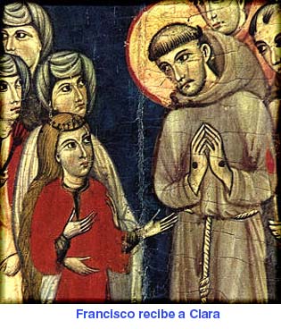 Y Clara lo abandona realmente todo: la seguridad de la familia, las riquezas y privilegios de un linaje noble y acomodado, la posibilidad de un matrimonio congruente, la inminente herencia paterna, y hasta la posibilidad de ayudar generosamente a los pobres y necesitados, como lo había venido haciendo hasta entonces (LCl 3). Y la lista podría fácilmente alargarse. Como de un plumazo tachó Clara y renunció a todas las cosas, cuando en la noche del Domingo de Ramos de 1212 abandonó la casa paterna, corrió a la Porciúncula y recibió de Francisco el vestido de penitencia. «Dio al mundo el "libelo de repudio"», dice su biógrafo (LCl 8), y no con cara triste, cual si perdiera algo, sino con una alegría y alborozo que nacían del conocimiento de que estaba a punto de ganar una riqueza nueva y superior, más aún, de ganarlo todo. No se hizo pobre por no poseer nada, sino, más bien, por no querer poseer nada. Aquella noche, una doncella noble, rica y educada, se convirtió en una pordiosera, que de un modo consciente se enrola en el ejército de los pobres y desheredados. Quiere vivir conforme al Evangelio, como se lo había escuchado a Francisco. De ahí que, de una manera consecuente, quiera cumplir la exhortación del mismo Evangelio: «Si quieres ser perfecto, anda, vende lo que tienes y da el dinero a los pobres; así tendrás un tesoro permanente en el cielo» (Mt 19,21). El asunto de la parte de su herencia no lo abandona sin más en manos de la familia, de modo que ésta pudiera disponer de ella. En su proceso de canonización, tres hermanas declaran sobre el particular cómo Clara se impuso contra la voluntad de sus parientes, a fin de cumplir la palabra del Señor. Así, la hermana Cristiana, decimotercera testigo: «También, sobre la venta de su herencia, la testigo dijo que los parientes de madonna Clara habían querido dar más cantidad que ninguno de los otros, pero que ella no había querido vendérsela a ellos, sino a otros, para que no quedasen defraudados los pobres» (Proceso 13,11; cf. 3, 31; LCl 13). Lo cual significa, sin duda, que o bien Clara temió algún engaño por parte de los parientes, o bien que quiso evitar la apariencia de no haberlo vendido todo. Y continúa la hermana Cristiana: «Y todo lo que recibió de la venta de la herencia lo distribuyó a los pobres» (Proceso 13,11). Aquí se echa ya de ver la rectitud y la decisión que se manifiestan a lo largo de la vida de ambos santos cuando se trataba de vivir la pobreza. De cuanto llevamos dicho se deduce que Clara se sintió impulsada en lo más profundo a buscar la pobreza y su valor. Quiere ser pobre, porque Cristo había vivido pobre sobre la tierra. La pobreza es para ella una parte esencial del seguimiento de Cristo, con una visión que casi le impuso necesariamente la situación de aquellos días. La palabra de la Sagrada Escritura: «Las zorras tienen guaridas, y las aves del cielo nidos; pero el Hijo del hombre no tiene donde reclinar la cabeza» (Mt 8,20), la impresionó hondamente de por vida (Carta I, 3). El Cristo moribundo en la cruz, víctima del abandono y humillación más profundos, y por tanto de la pobreza, es la imagen de la vida de Cristo que más honda influencia ejerció sobre Clara y su vida (cf. LCl 30-32). En los escasos escritos de Clara que se han conservado así lo expresa de forma directa o indirecta frecuentemente. En la Carta II a la beata Inés de Praga escribe, por ejemplo: «Abraza como virgen pobre a Cristo pobre. Míralo hecho despreciable por ti, y síguelo, hecha tú despreciable por Él en este mundo. ¡Oh reina nobilísima!, observa, considera, contempla con el anhelo de imitarle, a tu Esposo..., hecho por tu salvación el más vil de los varones: despreciado, golpeado, azotado de mil formas en todo su cuerpo, muriendo entre las atroces angustias de la cruz» (Carta II, 4). Mas no sólo Cristo moribundo en la cruz impresionó tan profundamente a Clara; también el Hijo de Dios hecho hombre y nacido en un pesebre cual niño pobre, y la vida entera de Jesús, «que se humilló y se hizo como un esclavo» (Flp 2,7), fueron otras tantas «imágenes» que le sirvieron de continuo y fuerte acicate para seguir al Señor en su humillación. Por ello, al final de su vida, escribe a las hermanas en el Testamento: «Pido al dicho cardenal (protector de la Orden) que, por amor de aquel Señor que fue recostado pobremente en el pesebre, pobremente vivió en el mundo y desnudo permaneció en el patíbulo, vele siempre para que esta pequeña grey, que Dios Padre engendró en su santa Iglesia por medio de la palabra y ejemplo de nuestro bienaventurado padre san Francisco y por la pobreza y humildad que practicó en seguimiento de la del amado Hijo de Dios y de la gloriosa Virgen María su Madre, observe la santa pobreza que prometimos a Dios y a nuestro beatísimo padre Francisco y tenga a bien animar a las mencionadas hermanas y conservarlas en ella» (TestCl 7; cf. Carta I, 3). Y cuando en el capítulo 2 de su Regla, exhorta Clara a las hermanas a contentarse con un vestido pobre, remite directamente en ese texto al Niño del pesebre: «Y por amor del santísimo y amadísimo Niño, envuelto en pobrísimos pañales y reclinado en el pesebre, y de su santísima Madre, amonesto, ruego y exhorto a mis hermanas que se vistan siempre de vestiduras viles» (RCl 2,6). En esa palabra de la Regla sorprende una cosa: Clara no sólo se refiere a la pobreza de Cristo, sino que destaca a la vez la vida pobre de María al lado de su Hijo. Cierto que también Francisco lo hace en algunas ocasiones (cf. 2CtaF 5; 1 R 9,5; UltVol 1), pero Clara, dentro del número mucho menor de sus escritos conservados, recuerda con mucha mayor frecuencia a María participando en el seguimiento de Cristo pobre (cf. RCl 2,6; 6,18; 8,20; 12,31; TestCl 7; Carta III, 4; etc.). Clara se sabe también alentada y hasta obligada por María a emprender el camino de la pobreza de Cristo. Ese camino la conduce asim